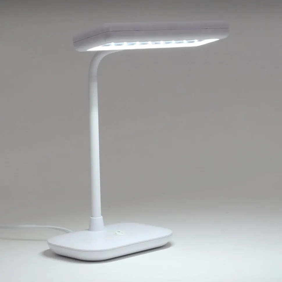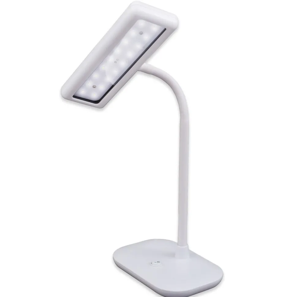 Witte LED daglichtlamp Daylight van kunststof In een eenvoudig, Modieus ontwerp biedt de Daylight LED daglichtlamp op elk moment van de dag aangenaam licht. Dankzij de witte kleurstelling kan de lamp gemakkelijk worden gecombineerd met elk interieur – waardoor het de juiste keuze is voor elk bureau. De praktische lamp van wit kunststof eindigt in een brede en stabiele voet. De aan/uit-schakelaar bevindt zich ook op de voet, waardoor de lamp individueel en gemakkelijk kan worden bediend. Dankzij de Gross lampenkop, die harmonieert met de rest van het ontwerp, zorgt de lamp altijd voor voldoende daglicht.