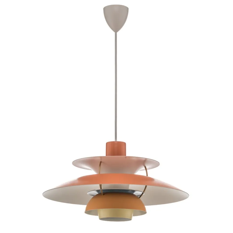 De drievoudige kap van de hanglamp stamt af van de ontwerpen van Poul Henningsen, de bekende Deense ontwerper die vanaf 1925 tot zijn dood in 1967 producten voor Louis Poulsen maakte. Louis Poulsen is een Deens bedrijf met een lange traditie in de productie van designer lampen die ontwikkeld zijn volgens het principe “vorm volgt functie”. Louis Poulsen produceert al meer dan 100 jaar typische Scandinavische lichtoplossingen, waarvan sommige modellen al tientallen jaren verkrijgbaar zijn en voortdurend opnieuw worden uitgegeven. In 2018 is het 60 jaar geleden dat de PH 5 werd geboren. Naar aanleiding hiervan zijn nieuwe kleurencombinaties van deze klassieke lamp op de markt gebracht.