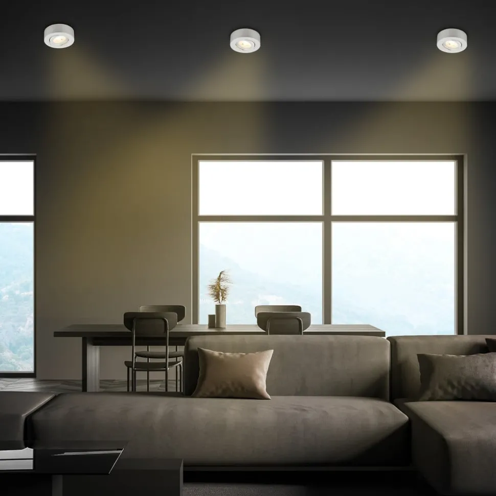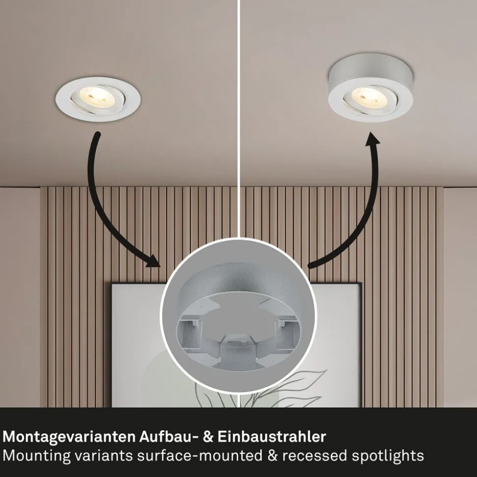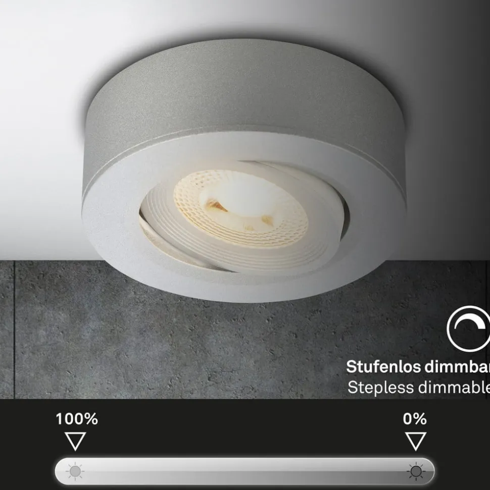 Praktische Desi LED lamp – kan worden gebruikt als inbouw- of opbouwlamp De kleine ronde Desi LED lamp kan zowel als inbouwlamp als opbouwlamp worden gebruikt. De lamp kan extern worden gedimd en kan worden gedraaid. Het kan in bijna elke kamer in huis worden gebruikt.