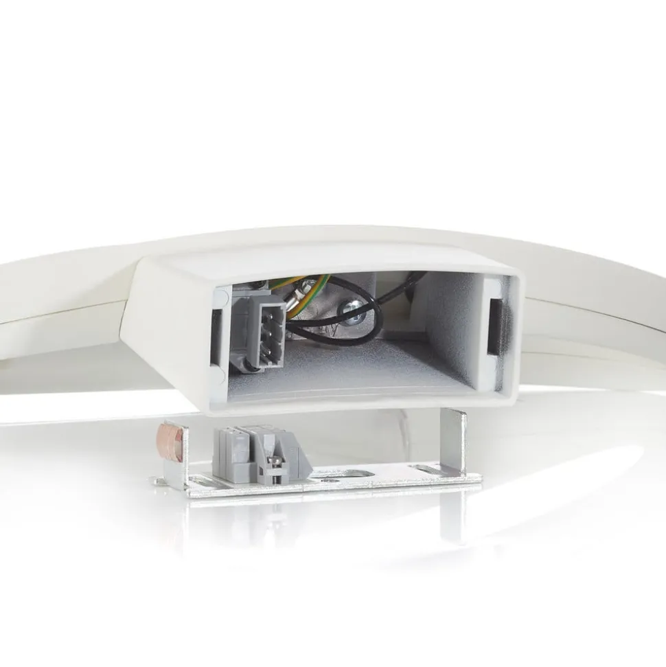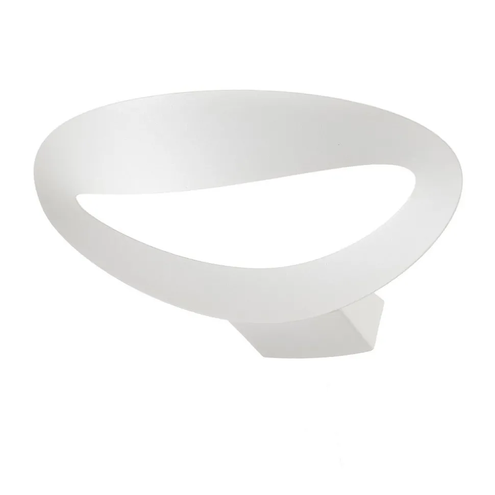 De lichtbron van deze design wandlamp bevindt zich aan de binnenkant van de gebogen ring, zodat er indirecte verlichting voor gangen of accentverlichting in woonruimtes wordt gecreëerd. Als er een dimbare lichtbron wordt gebruikt, kan Mesmeri ook via de wandaansluiting worden gedimd.