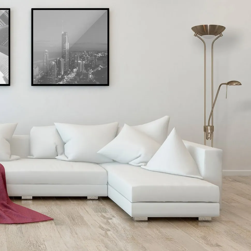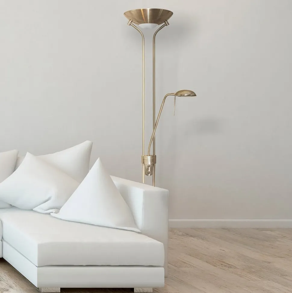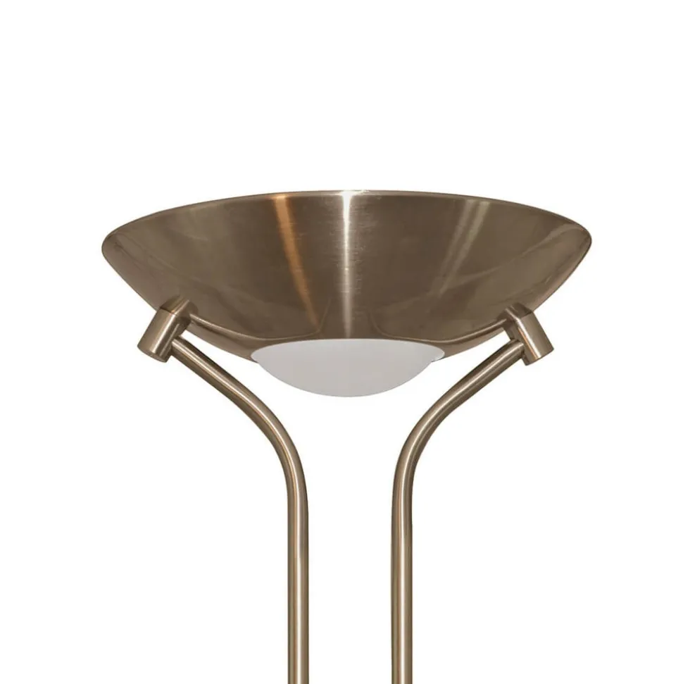 De JERIK vloerlamp is een plafond- en leeslamp in één De JERIK uplighter biedt het juiste licht voor elke stemming of activiteit. Aan de ene kant is er de naar boven schijnende schijnwerper, die uitzonderlijk aangenaam en indirect licht geeft, en aan de andere kant is er het variabele leeslampje, waarvan de gerichte verlichting helderheid biedt wanneer je het nodig hebt. Een dimmer voor het aanpassen van de lichtintensiteit is geïntegreerd en de twee schakelaars bevinden zich op het frame.