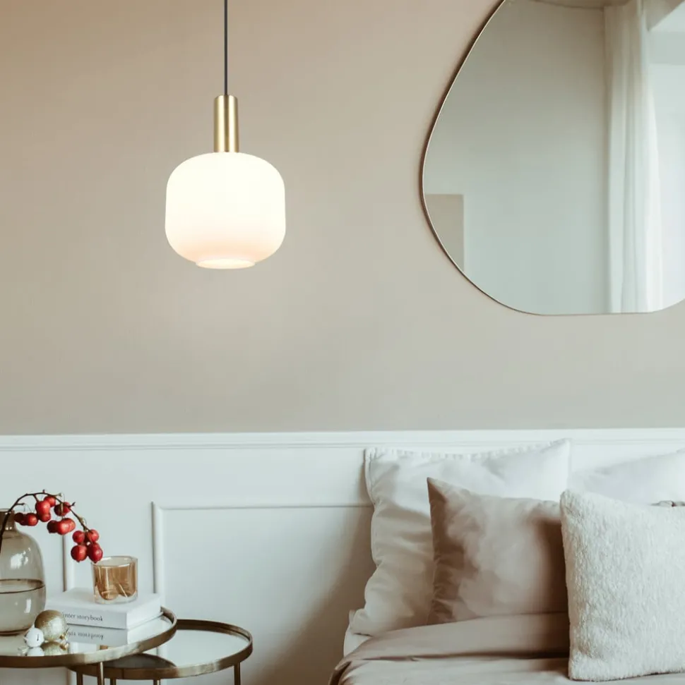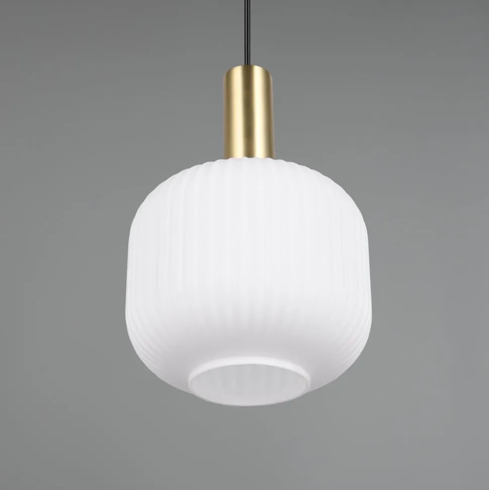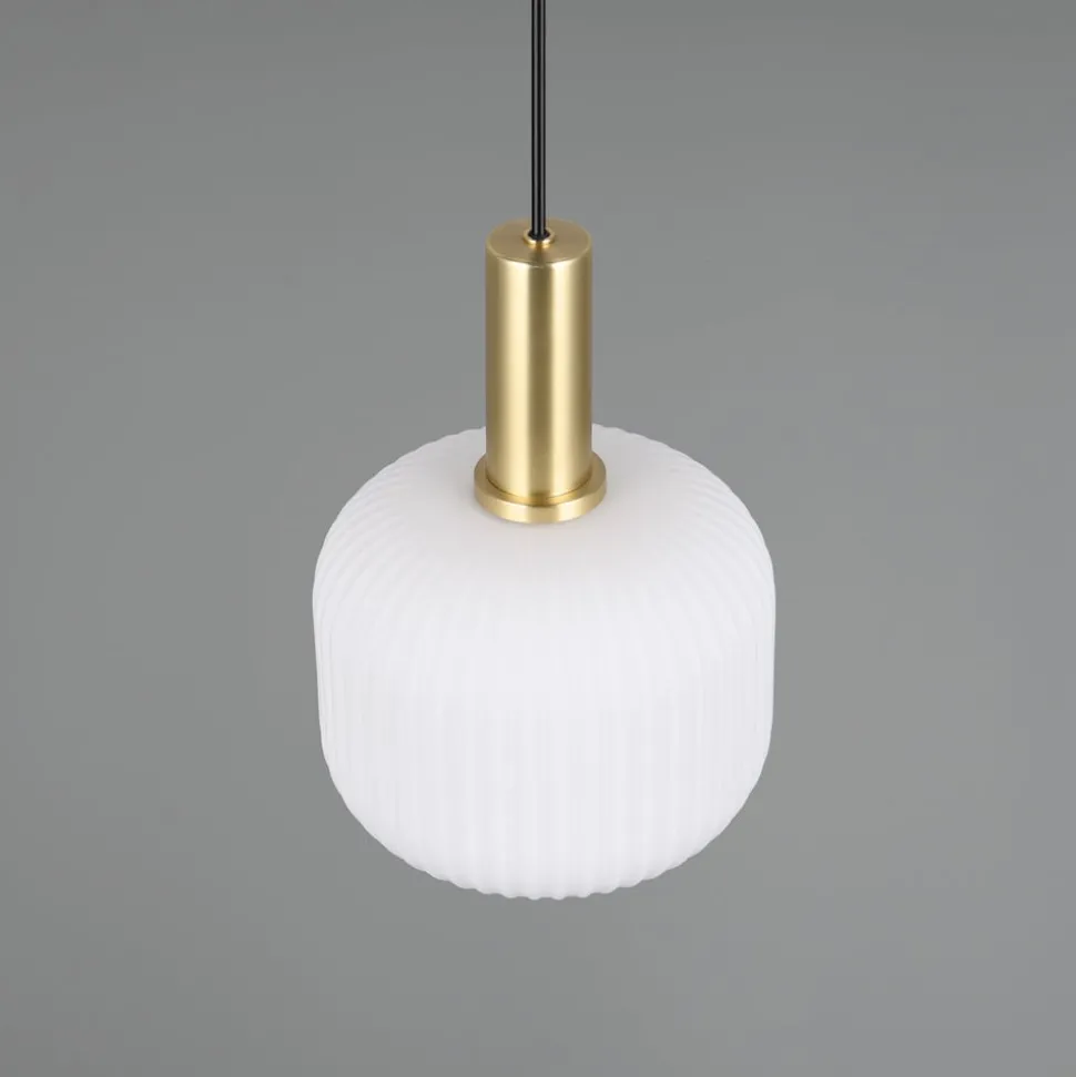 Diva hanglamp, 1-lamp, messingkleurig, opaal, metaal, glas
