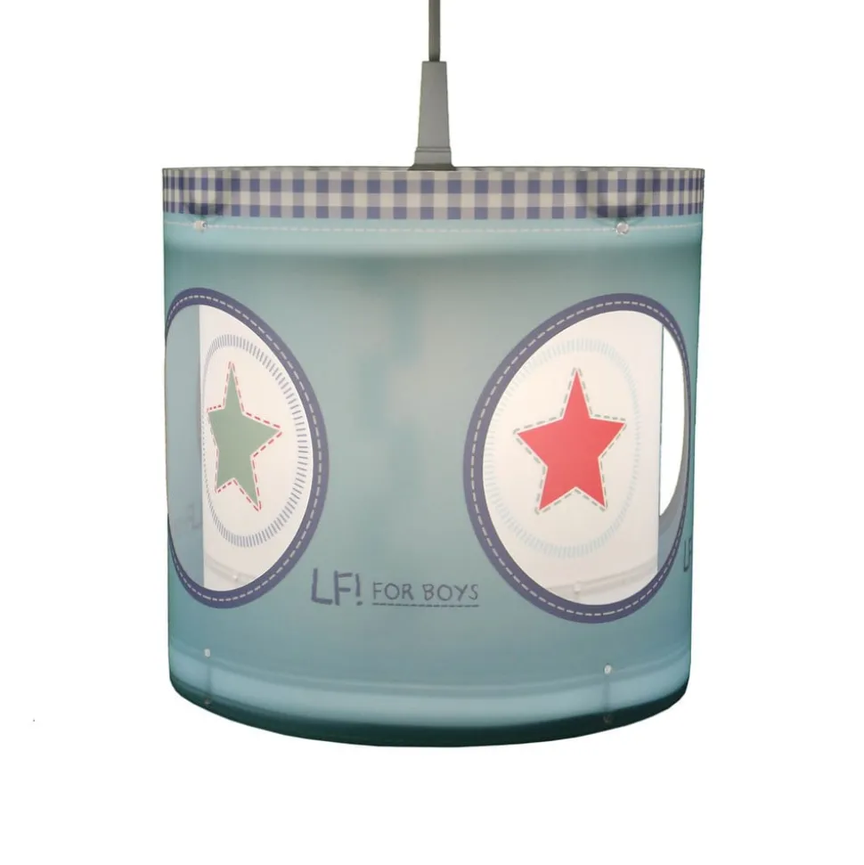 De roterende pendelarmatuur Lief for Boys is een constructie van twee cilindervormige lampenkappen met verschillende diameters. Terwijl de buitentint in blauw is uitgevoerd en ronde uitsparingen heeft, is de binnentint in wit gehouden en toont gekleurde sterren. Het licht van de ingeschakelde lichtbron valt zachtjes door beide kappen en verlicht de ruimte optimaal. Het hoogtepunt van de lamp is de roterende binnenkap, die is uitgerust met een zonnepaneel. Of het nu door invallend zonlicht of door de ingeschakelde lichtbron is, de binnenschaduw begint te draaien zodra het licht op de zonnemodule valt.