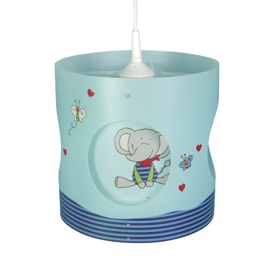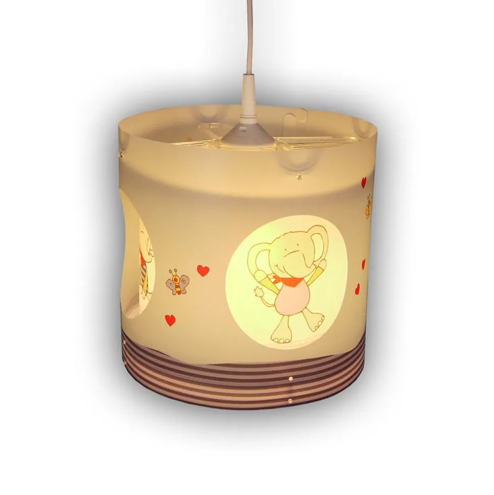 Zelfs de jongste kinderen zullen gefascineerd zijn door de hanglamp Lolo Lombardo in de kinderkamer. De hanglamp verlicht niet alleen de kinderkamer, het is ook een soort van mobiel die de aandacht trekt door zijn draaiende binnenkap. De lamp is ontworpen met twee kappen van stofafstotend polypropyleen. De buitenste kap heeft vier ronde perforaties waardoor de vier olifantmotieven afwisselend op de binnenkap te zien zijn. Dit gebeurt door de binnenste paraplu te draaien, door middel van een zeer stille motor die door een zonnepaneel wordt aangedreven vanuit het licht van de lamp.