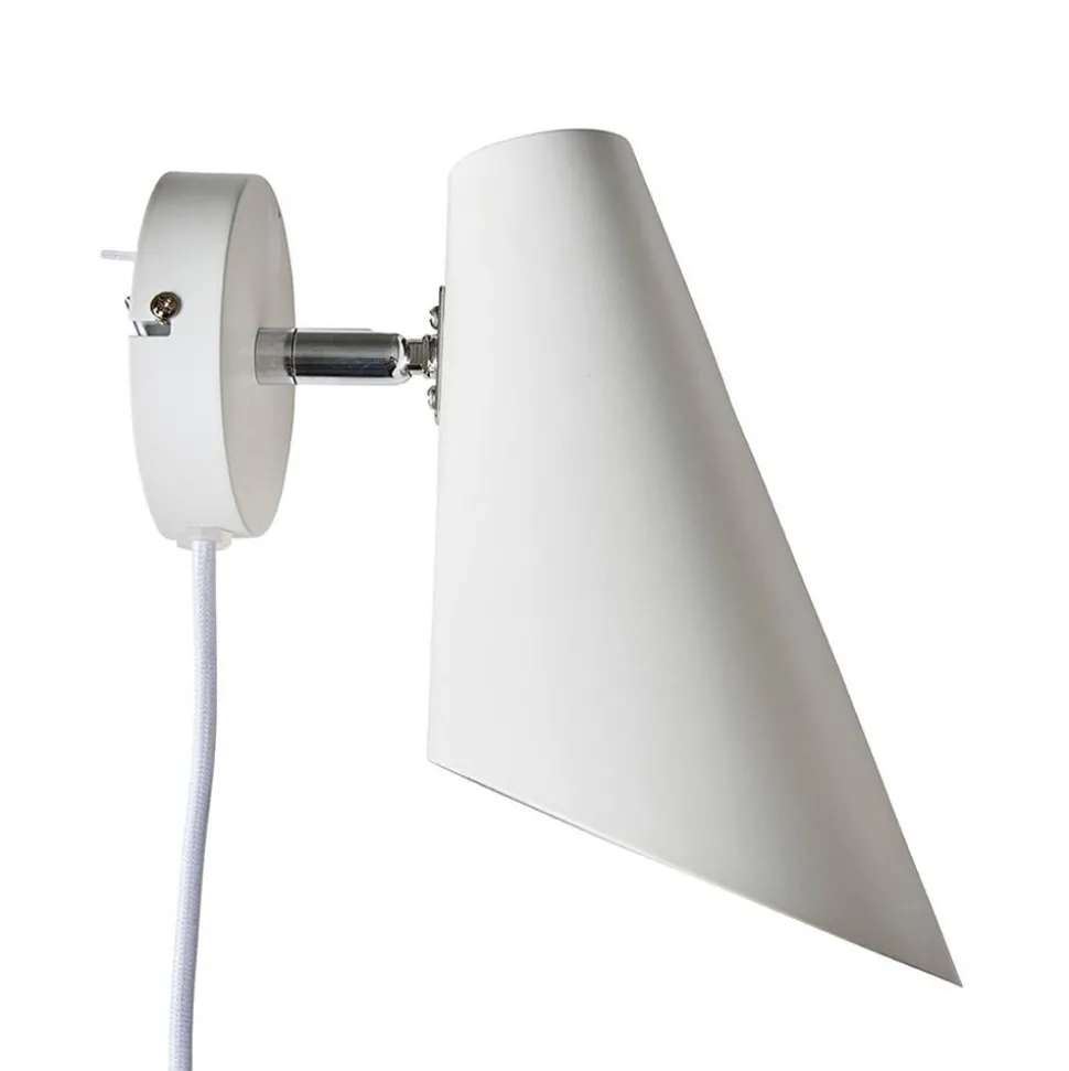 Cal wandlamp met verstelbare kap en stekker en schakelaar Die wandlamp Cal is uitgerust met een afgeschuinde metalen kap die op de ronde wandhouder kan worden gedraaid en gezwenkt met behulp van een scharnier om de lichtstraal naar de gewenste positie te leiden. De wandlamp is uitgerust met een kabel met stekker zodat een stopcontact voldoende is om de lamp aan te sluiten. De schakelaar is bovenaan de lampenkop geïnstalleerd. De Cal wandlamp biedt gerichte verlichting, niet alleen in de woonkamer, maar ook in de slaapkamer aan de muur boven of naast het bed als vervanging voor een schemerlamp. De Cal wandlamp is een product van DYBERG LARSEN. Het bedrijf, gevestigd in Denemarken op het eiland Funen, ontwikkelt lampen voor Innes en buiten tegen betaalbare prijzen, zonder concessies te doen aan kwaliteit en een mooi, overwegend Scandinavisch ontwerp.