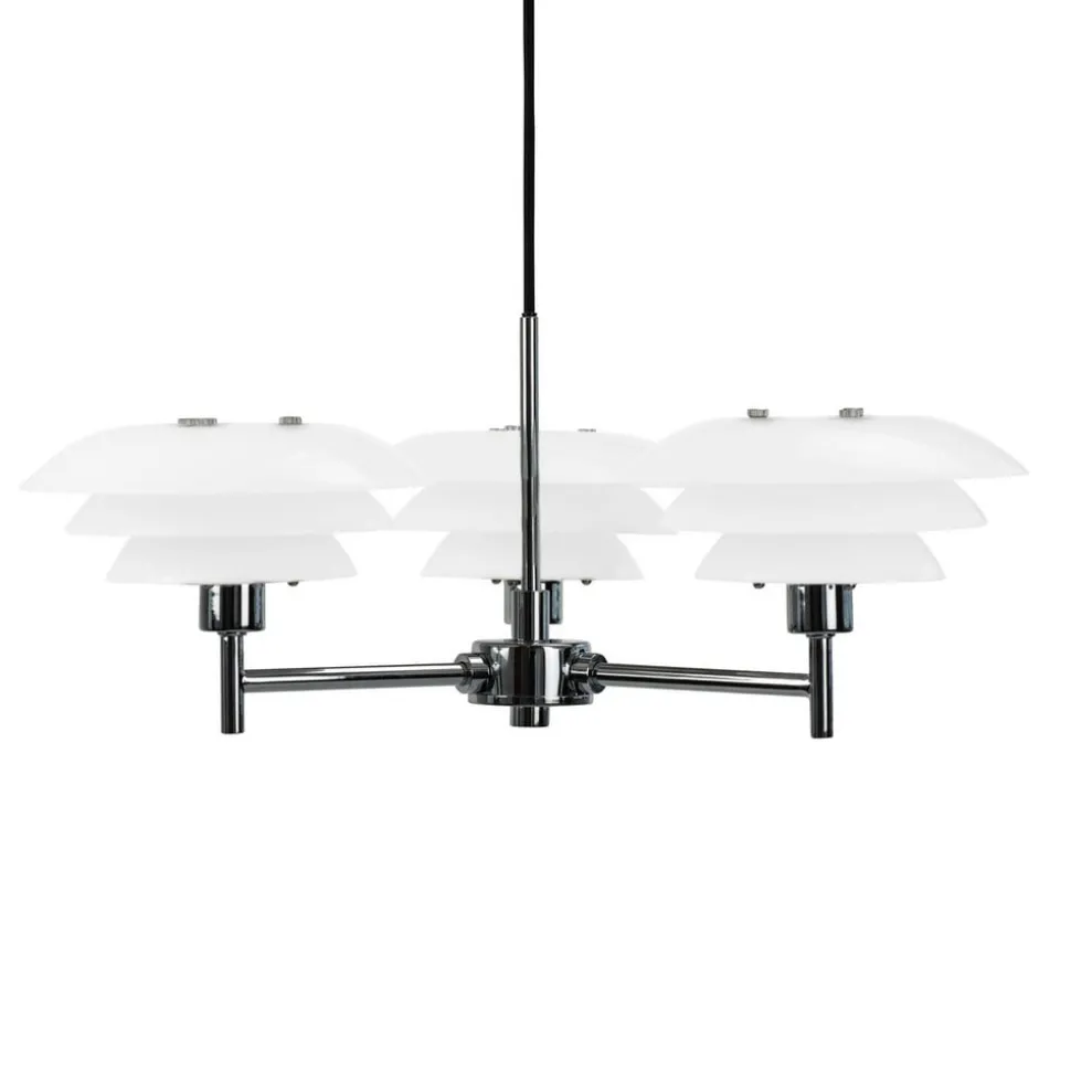 Kroonluchter DL20 met 3 lampen De kroonluchter DL20 is een van de nieuwere modellen in de serie. De kroonluchter behoudt zowel het mooie en esthetische ontwerp van de DL20 serie als het prachtige en warme licht. De kap van opaalglas is een terugkerend thema, zodat de lampen binnen de serie gemixt en gematcht kunnen worden – extern dimbaar