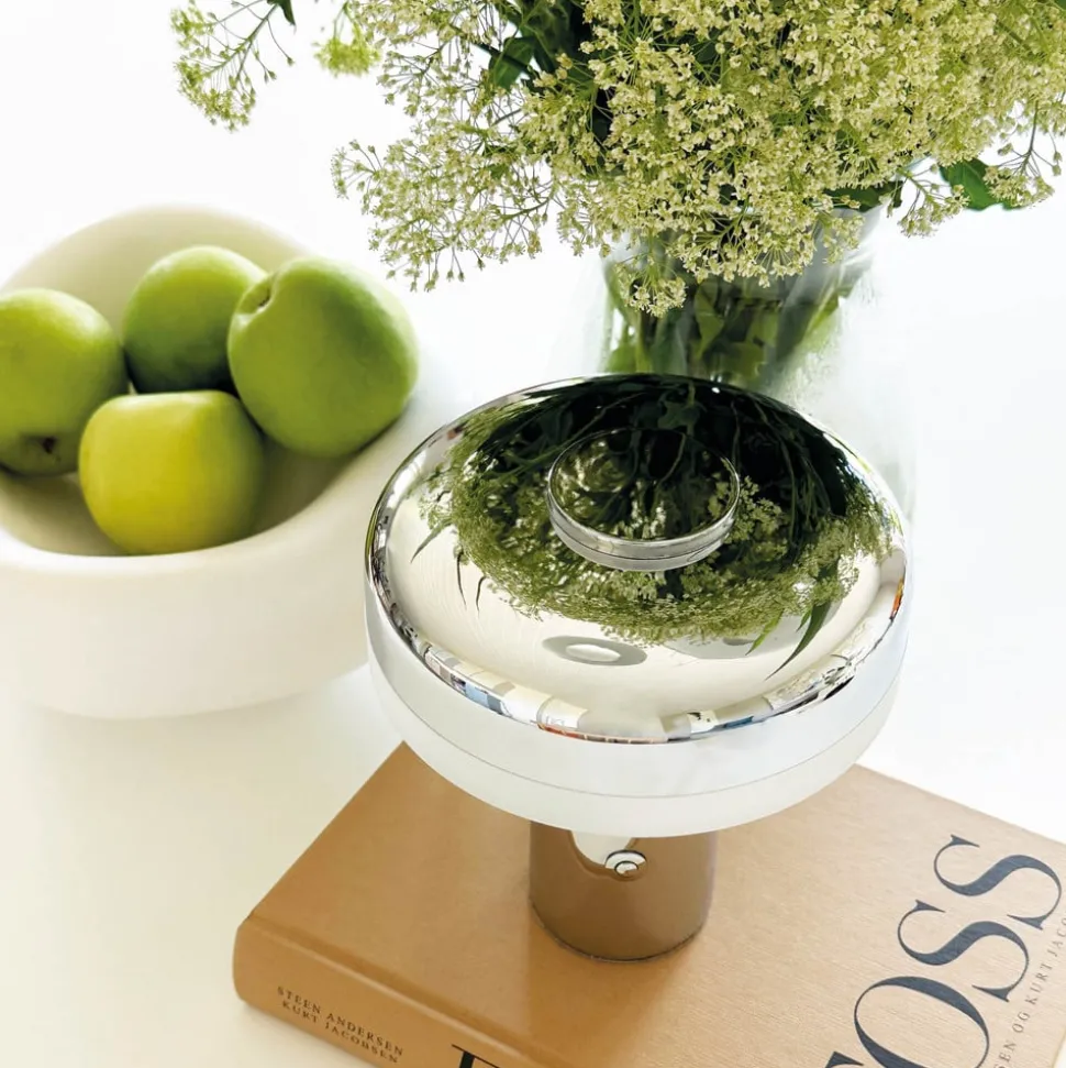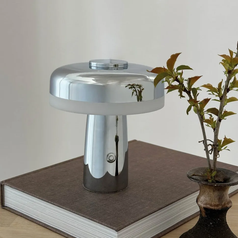 Dyberg Larsen LED tafellamp Porter, chroom, hoogte 16 cm
