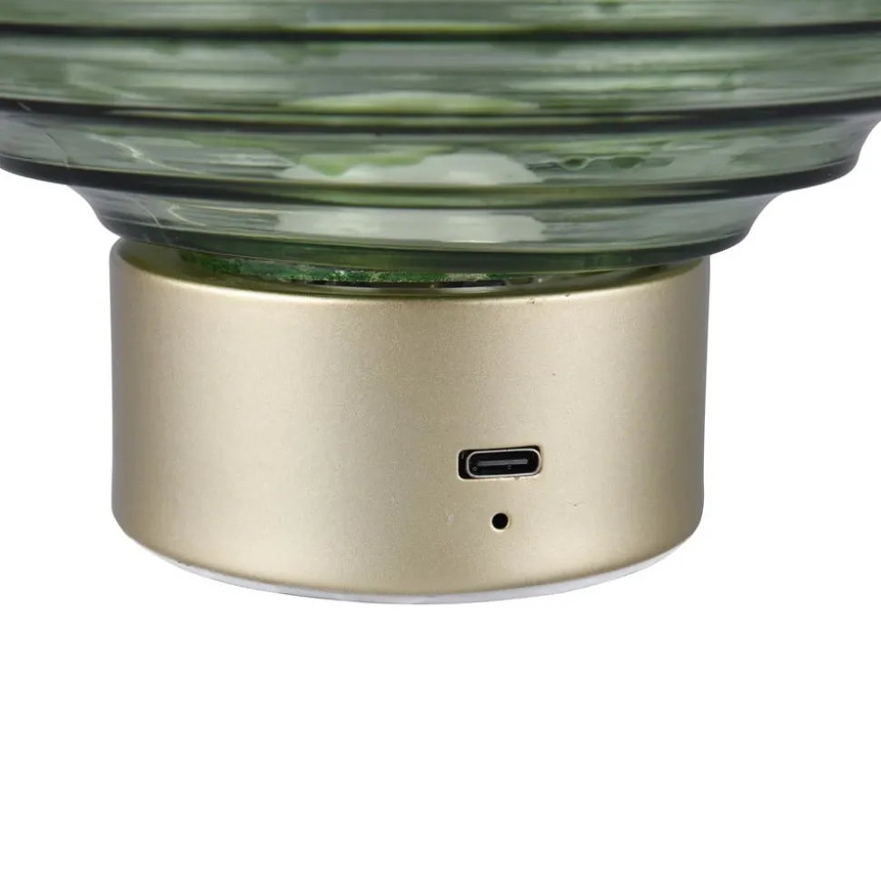 Earl LED tafellamp, messing/groen, hoogte 14,5 cm, glas