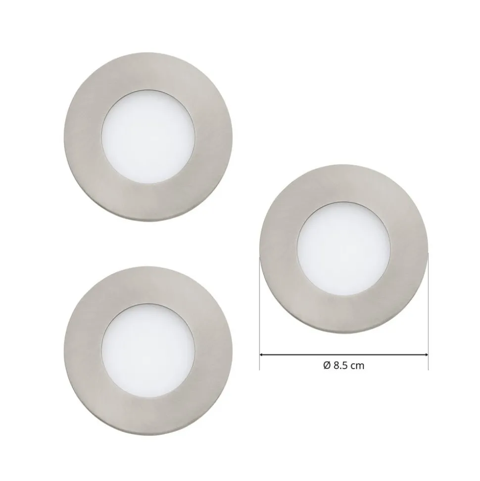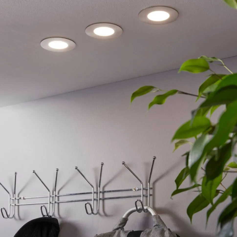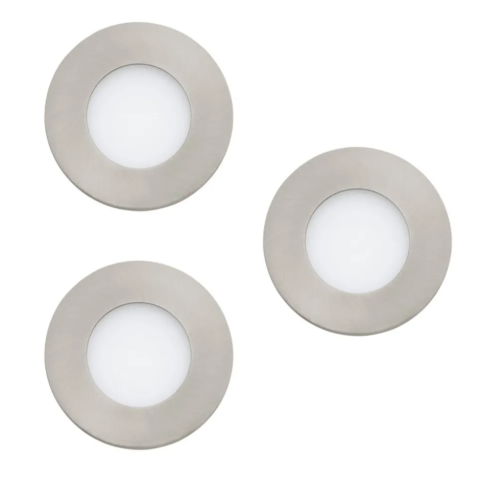 De set van 3 LED-spots is voorzien van een frame in mat nikkel.