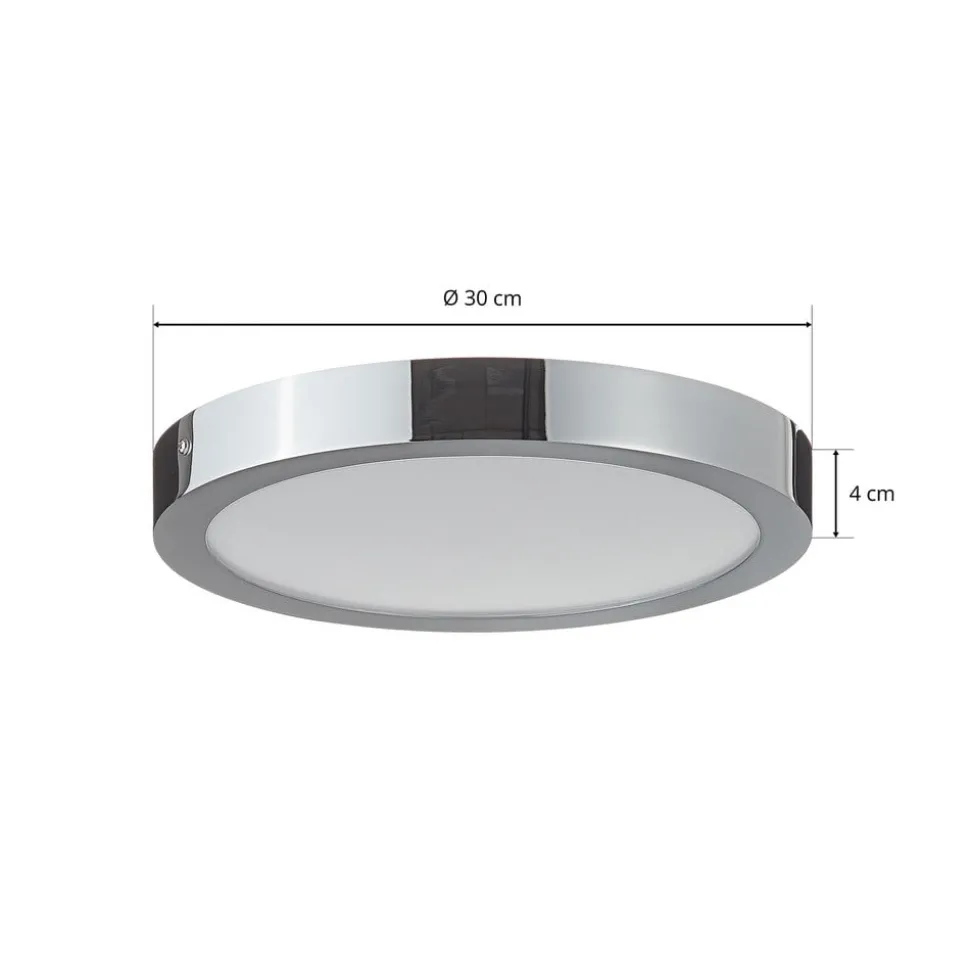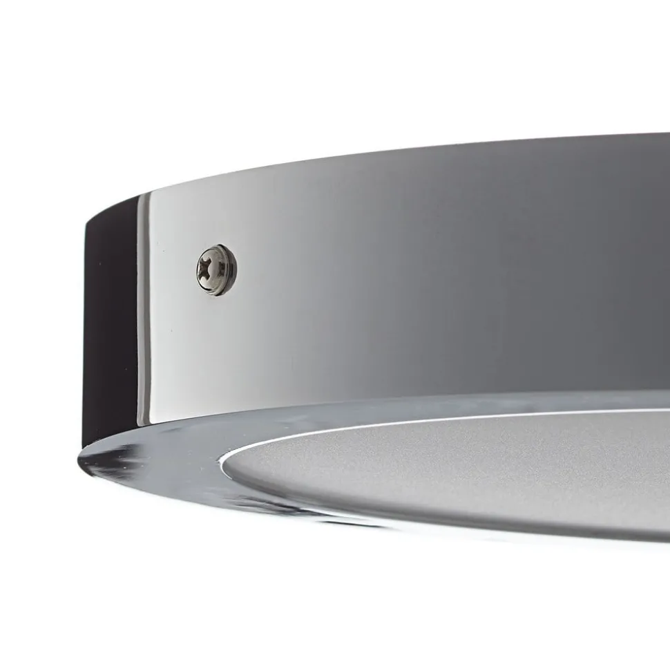 Ronde LED plafondlamp Fueva-C in chroomkleurige jas, aanstuurbaar via app
