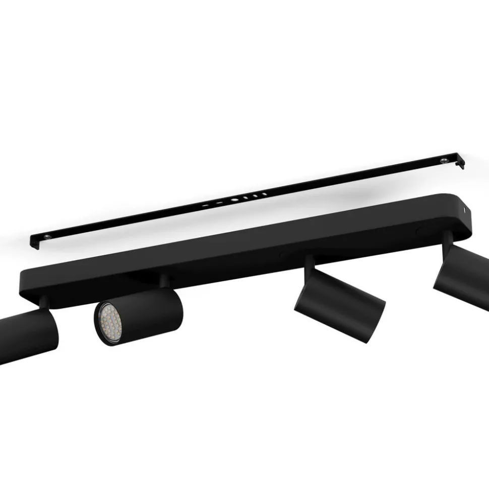 Viervlamige Telimbela-Z LED plafondspot, slim regelbaarDe lange Telimbela LED plafondspot, uitgerust met in totaal vier beweegbare spots, is volledig gemaakt van staal en wordt geleverd met slim regelbare lichtbronnen. Via de AwoX Home Control app, die gratis beschikbaar is voor Android en iOS, kunnen allerlei instellingen eenvoudig met een smartphone worden uitgevoerd. Niet alleen de selectie van gekleurd licht of wit licht in het bereik van 2.700 K tot 6.500 K, maar ook dimmen, het instellen van lichtprogramma’s of aanwezigheidssimulatie is mogelijk. De bediening van de armatuur via Bluetooth en ZigBee 3.0 maakt ook bediening via compatibele spraakassistenten en de integratie van de armatuur in compatibele smart home-systemen mogelijk.Een verdere bedieningsmogelijkheid wordt geboden door de afstandsbediening die verkrijgbaar is als accessoire.kenmerken / compatibiliteit:- bedienbaar met de gratis AwoX HomeControl app- compatibel met smart home systemen van andere fabrikanten die ZigBee 3.0 gebruiken- directe verbinding met Amazon Echo en Google Home mogelijk- groter bereik dankzij extra Bluetooth Mesh- bedienbaar met bijpassende afstandsbediening, zelfs zonder internettoegang (zie accessoires)