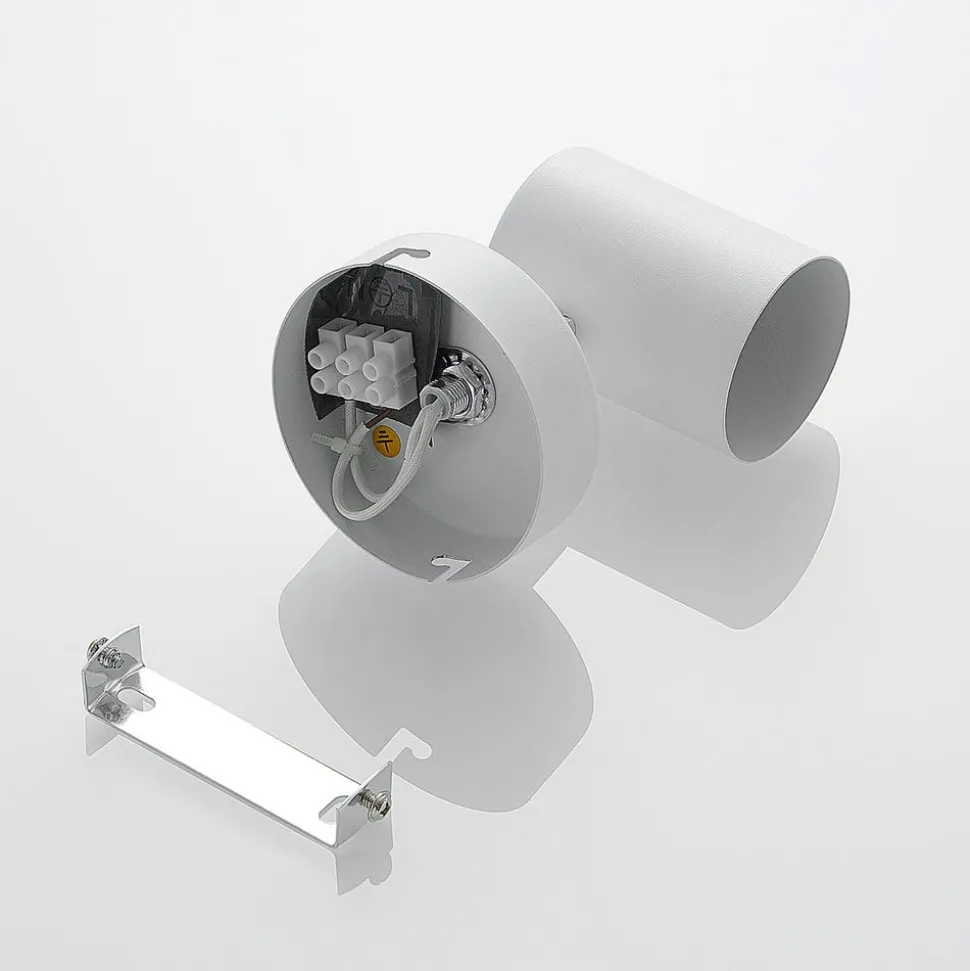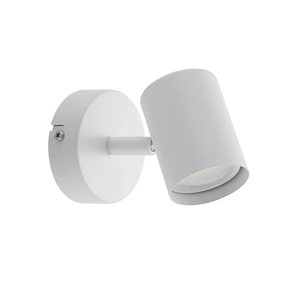 Witte Tomoki spot met cilindrische metalen kap Tomoki is een spot die op wanden en plafonds kan worden gemonteerd en wordt gekenmerkt door een beweegbare lampenkop. Deze cilindrische kap kan zowel gedraaid als gezwenkt worden en kan in elke denkbare richting gedraaid worden. Zowel de kap als het frame zijn gemaakt van metaal en hebben een mat witte afwerking die goed past bij veel verschillende interieurstijlen. Het armatuur kan worden uitgerust met GU10 lampen.