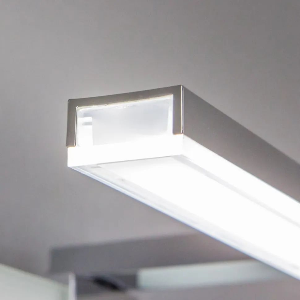 LED-spiegellamp Esther S3 zorgt op een elegante en discrete manier voor de juiste helderheid van het licht tijdens het scheren, opmaken en stylen. De lamp kan makkelijk rechtstreeks op een houten frame of badkamermeubel worden bevestigd. Met de geïntegreerde leds met een totaal vermogen van 6 W en een kleurtemperatuur van 5.500 K, verspreidt de spiegellamp met een stralingshoek van 180° het licht op een zuinige manier. Levering inclusief adapter.