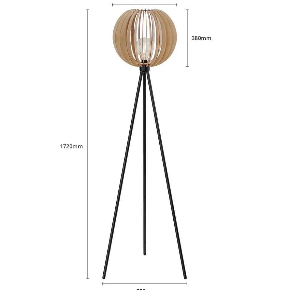Clay vloerlamp met zwart metalen frame en berkenmultiplex kap De Clay vloerlamp bestaat uit een metalen frame met drie poten en een bolvormige kap van licht berkenmultiplex. De combinatie van kleuren en materialen oogt modern en natuurlijk tegelijk en contrasteert aantrekkelijk, waardoor de vloerlamp een prachtige blikvanger is. De lampenkap bestaat uit losse houten elementen die uit elkaar staan. De lichtbron is niet inbegrepen en kan dus vrij worden gekozen. Het open ontwerp van de lampenkap biedt een decoratieve lichtbron voor gebruik. Het licht wordt naar het plafond en naar de zijkanten uitgestraald en geeft speciale licht- en schaduweffecten door het patroon van de lampenkap. De vloerlamp is geschikt voor gebruik in bijvoorbeeld de hal, in de slaapkamer en in de woonkamer. De Clay lamp is een product van het merk Envostar en bestaat uit FSC-gecertificeerd berken multiplex dat afkomstig is uit duurzaam beheerde gebieden. Envostar laat zijn producten in Europa maken, waardoor de transportroutes kort zijn en de CO2-uitstoot laag. Voor de verpakking zijn recyclebare materialen gebruikt.