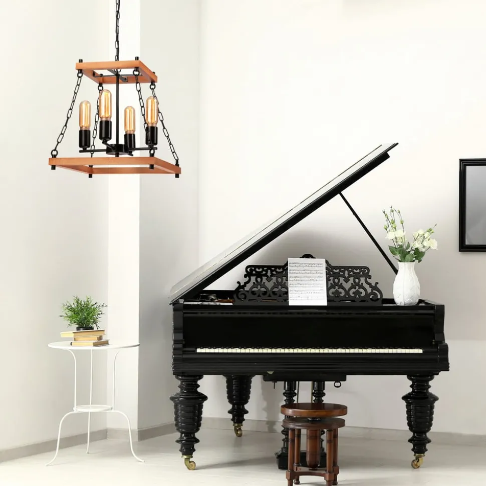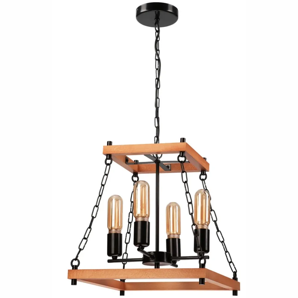 Envostar Glenn kroonluchter hout/zwart 4-lamps