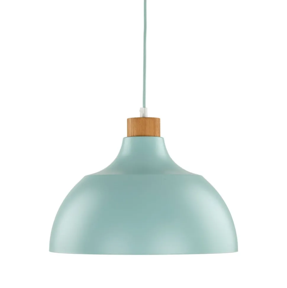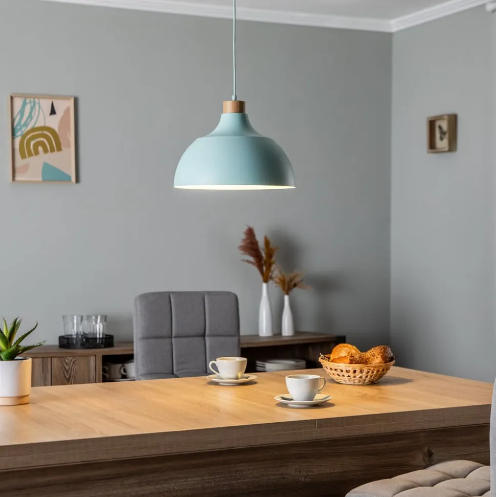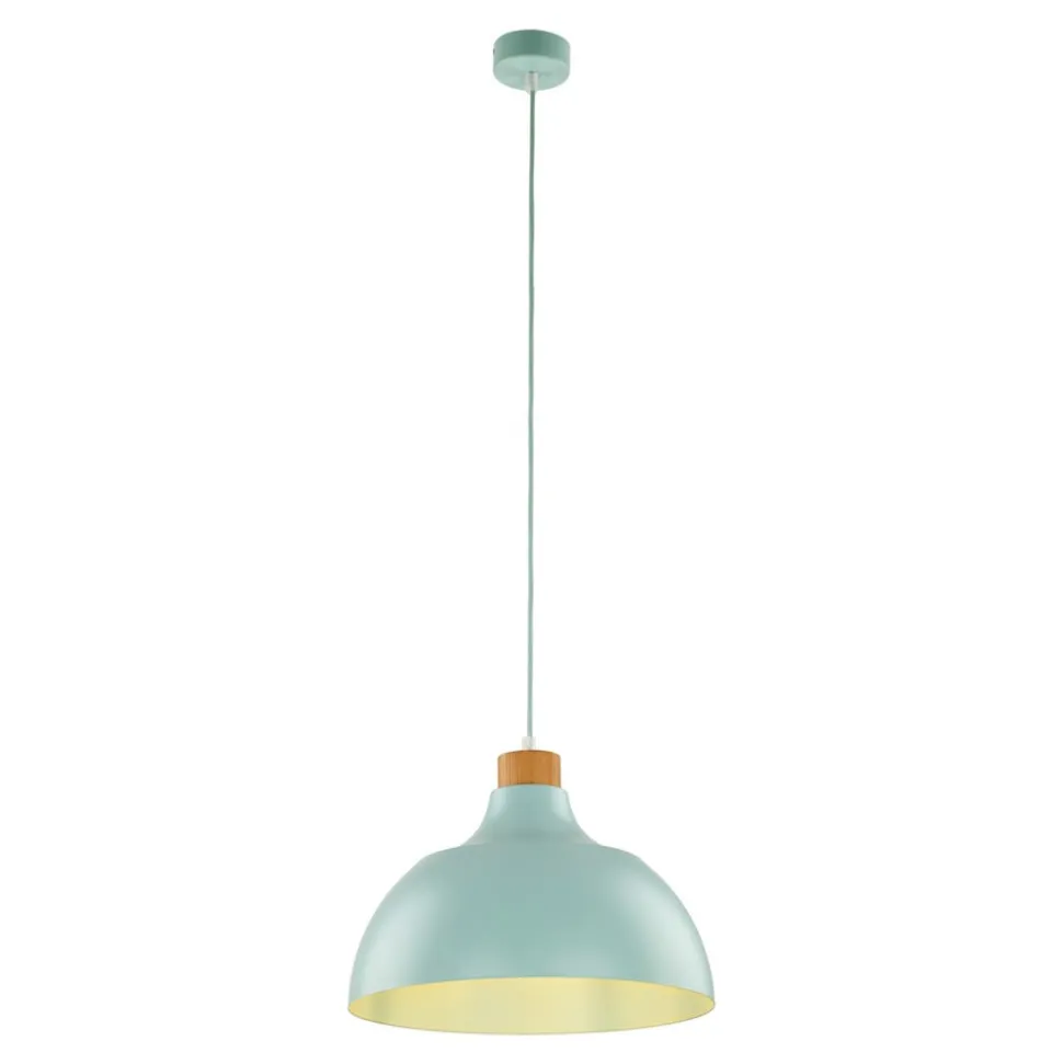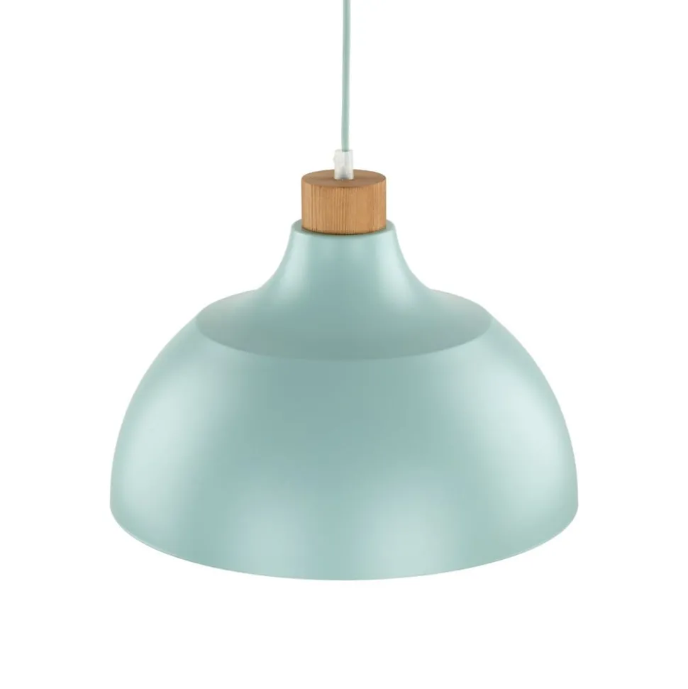 1-lamp Kaitt hanglamp met ronde stalen kap in mintgroen en lichtgekleurd houten detail Die combinatie van rond, harmonieus design en natuurlijke details maken de Kaitt hanglamp tot een tijdloze lichtbron met een Scandinavische Touch. De stalen kap heeft een mintgroene afwerking en is open aan de onderkant zodat een tafel, aanrecht of kamer direct verlicht wordt. Die Kaitt hanglamp is een product van het merk Envostar en wordt geproduceerd in Europa. Die minimaliseert de transportroutes en CO2-uitstoot. Die verpakking van de lamp is ook duurzaam – wegwerpmaterialen zoals plastic, polystyreen en plasticfolie worden vermeden.