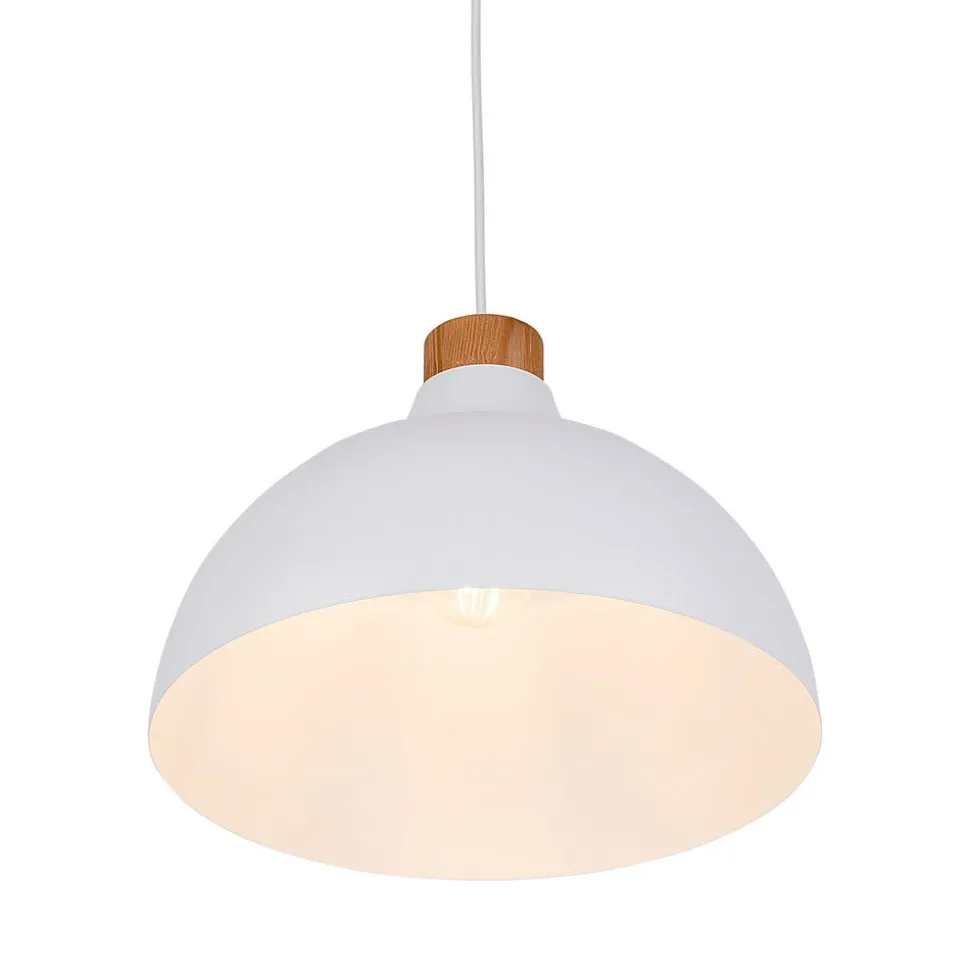 Envostar hanglamp Kaitt, houtdetail, Ø 34 cm, wit