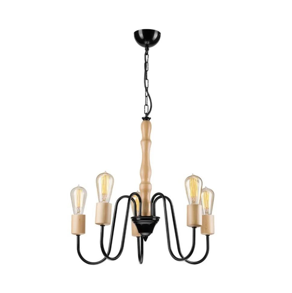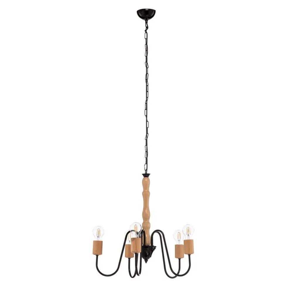 De Envostar Joiy kroonluchter, 5-lamps en uitgevoerd in elegant zwart, combineert modern design met natuurlijke materialen. Deze kroonluchter is gemaakt van ijzer en hout en brengt een harmonieuze combinatie van industriële charme en natuurlijke warmte in elke ruimte. De in Europa vervaardigde houten elementen zijn uniek en geven elke kroonluchter een bijzonder tintje door hun individuele kleur- en structuurvariaties.