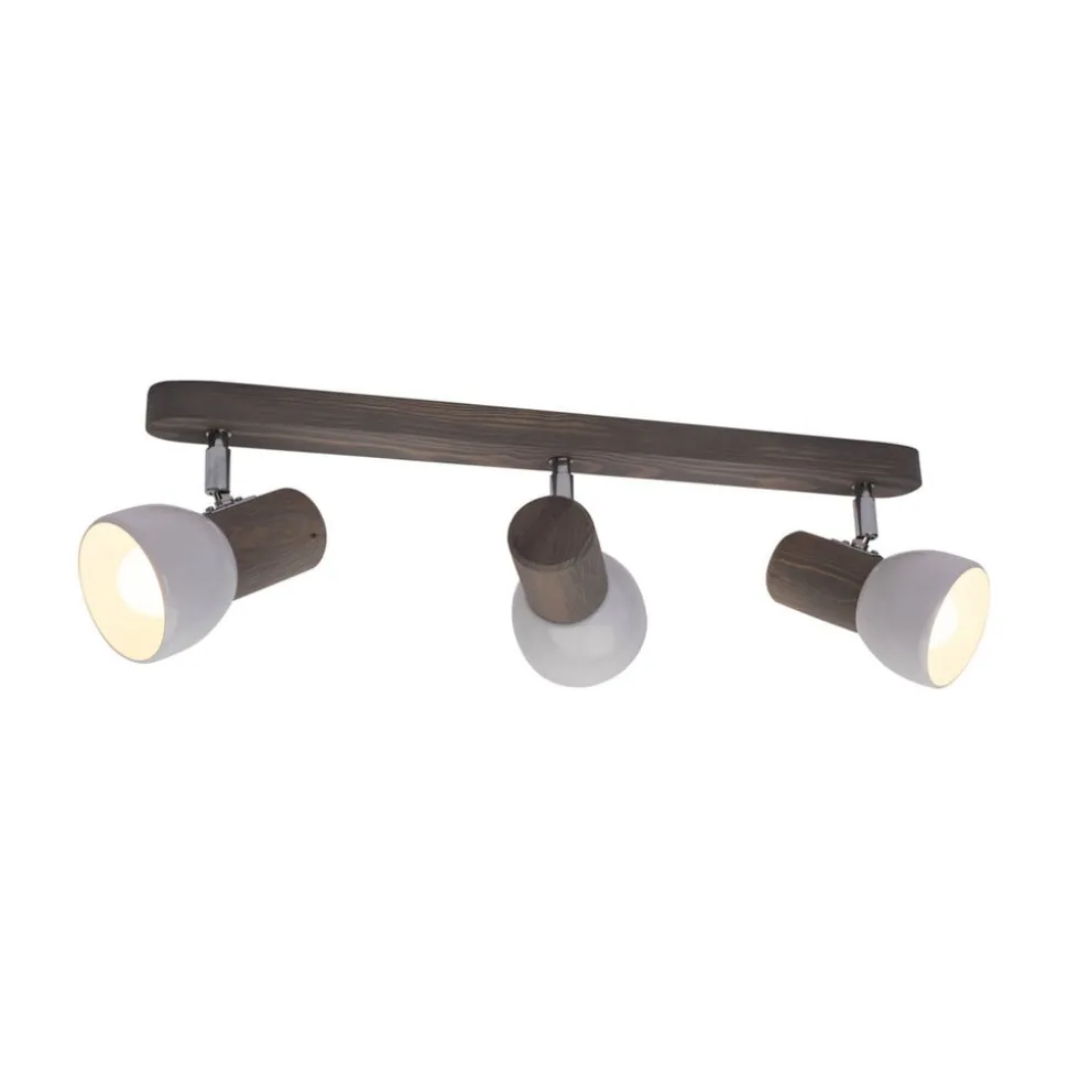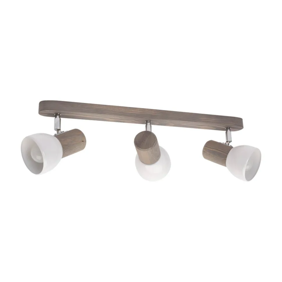 Nale is een plafondspot met drie lampen, gemaakt van natuurlijk dennenhout met witte metalen kappen. De zonneschermen zijn met behulp van kleine metalen verbindingsstukken aan de kap bevestigd en kunnen dus worden gedraaid en gezwenkt. Op die manier kan het licht van elke afzonderlijke spot naar specifieke hoeken van de kamer worden gericht om ze perfect in scène te zetten. Nale is dus de perfecte lichtbron voor talrijke ruimtes, zelfs smalle gangen of schuine ruimtes zijn er geen probleem voor.