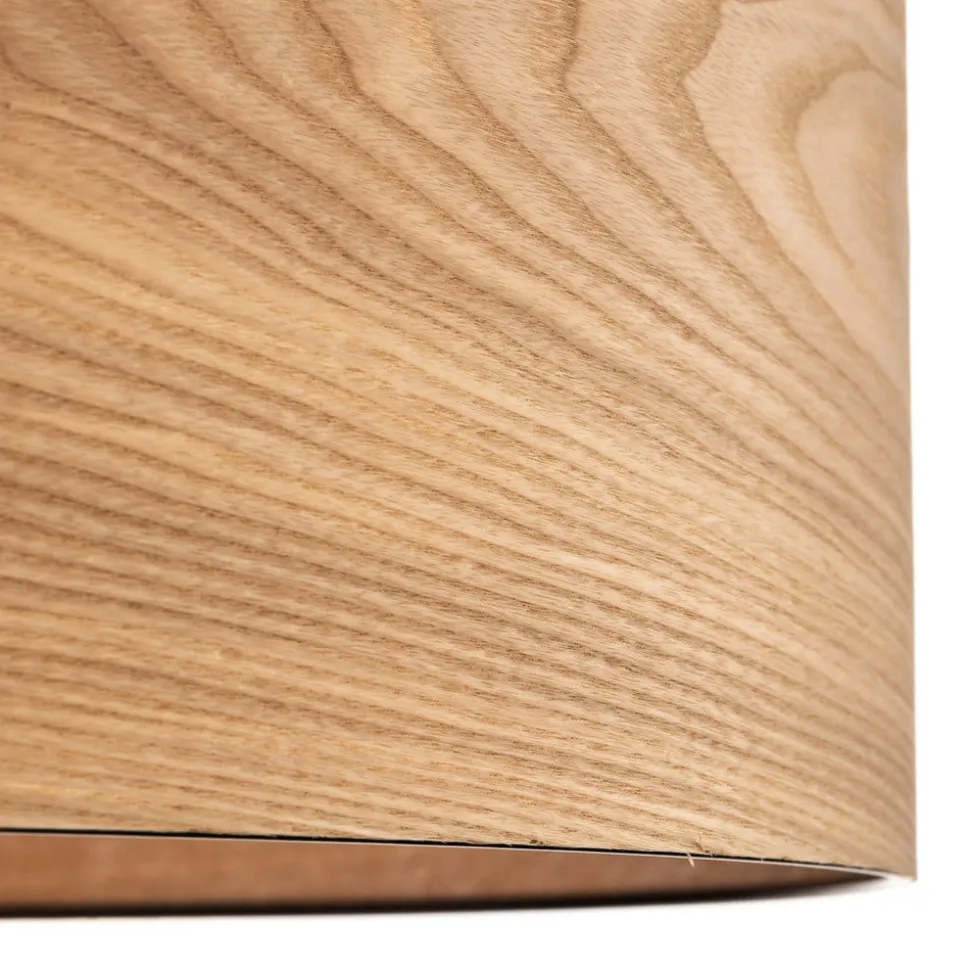 Duurzame plafondlamp Veneer met cilindrische kap van essenhouten kernfineer Veneer is een plafondlamp met een kap in een tijdloze cilindrische vorm, die zijn karakteristieke uiterlijk en lichteffect krijgt door het gebruik van een dun fineer van essenhout. Elk exemplaar heeft een individuele nerf, die prachtig wordt benadrukt wanneer de lamp brandt. De verticaal open vorm zorgt ook voor een directe verlichting van de ruimte eronder. De armaturen van het merk Envostar worden in Europa geproduceerd, wat de transportafstanden en CO2-uitstoot vermindert. Envostar gebruikt alleen recyclebare materialen voor de verpakking.