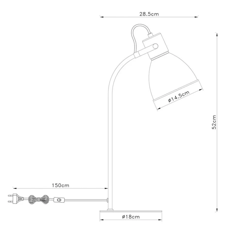 - Ø kap 14,5 cm, Ø voet 18 cm, snoer 150 cm