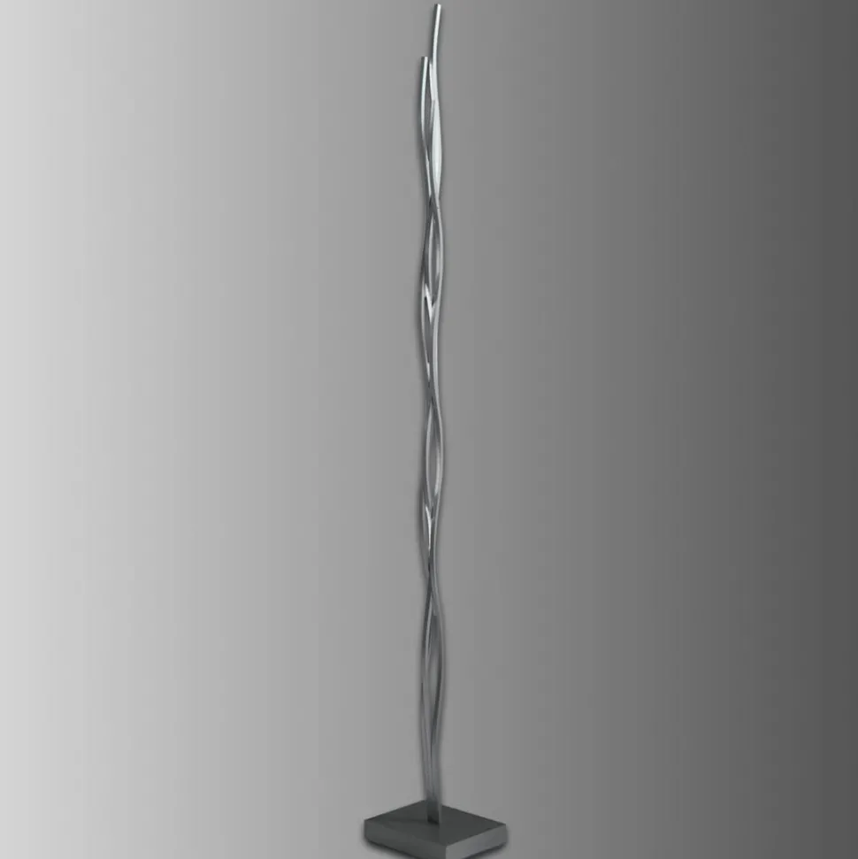 Zeer veelzijdig, de exclusieve Silk vloerlamp brengt abrupt artistieke flair in elke woonruimte. Nauw met elkaar verweven ontspruiten uit de ronde voet drie strengen van aluminium met aan het uiteinde schaduwloze LED-lichtbronnen.