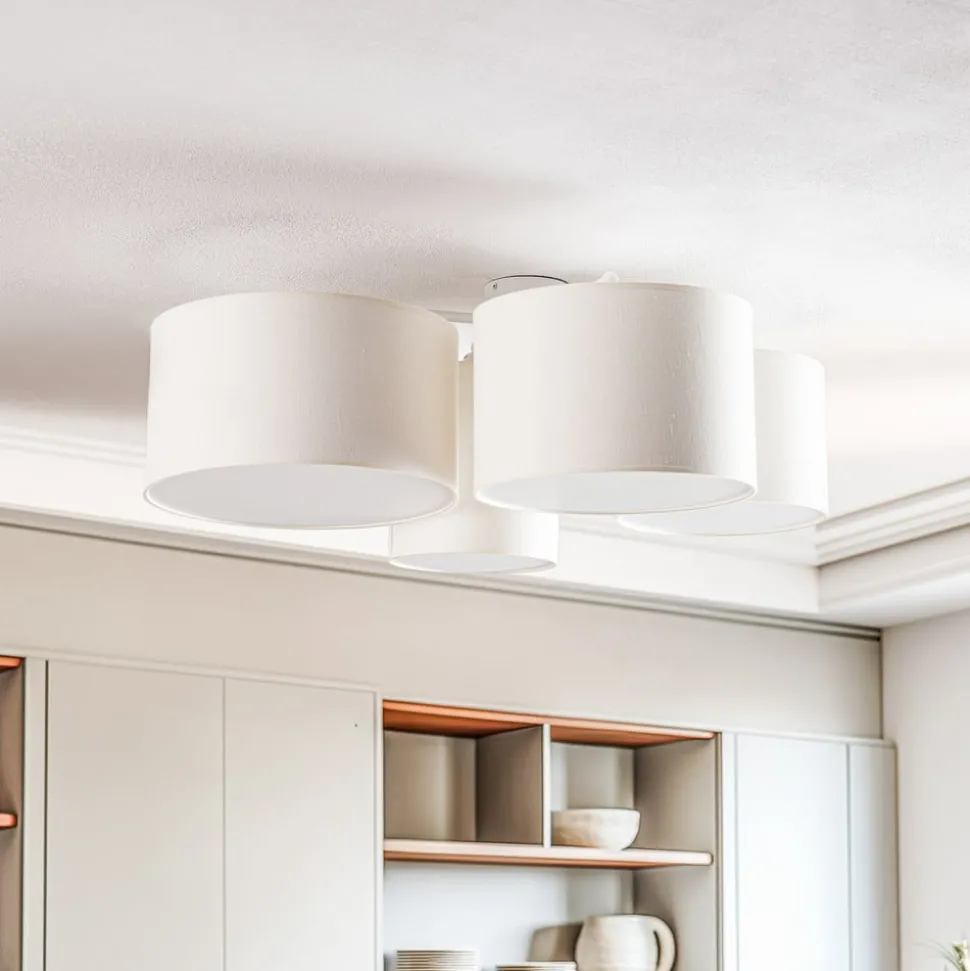 De Euluna Lodge plafondlamp, 4-lamps, in elegant beige, combineert modern design met functionele veelzijdigheid. Deze lamp is gemaakt van hoogwaardige materialen zoals textiel, folie en metaal en zet stijlvolle accenten in elke ruimte. Of het nu in de woonkamer, hal, slaapkamer of eetkamer is – de Euluna Lodge past zich harmonieus aan verschillende woonstijlen aan en zorgt voor een aangename verlichtingssfeer.