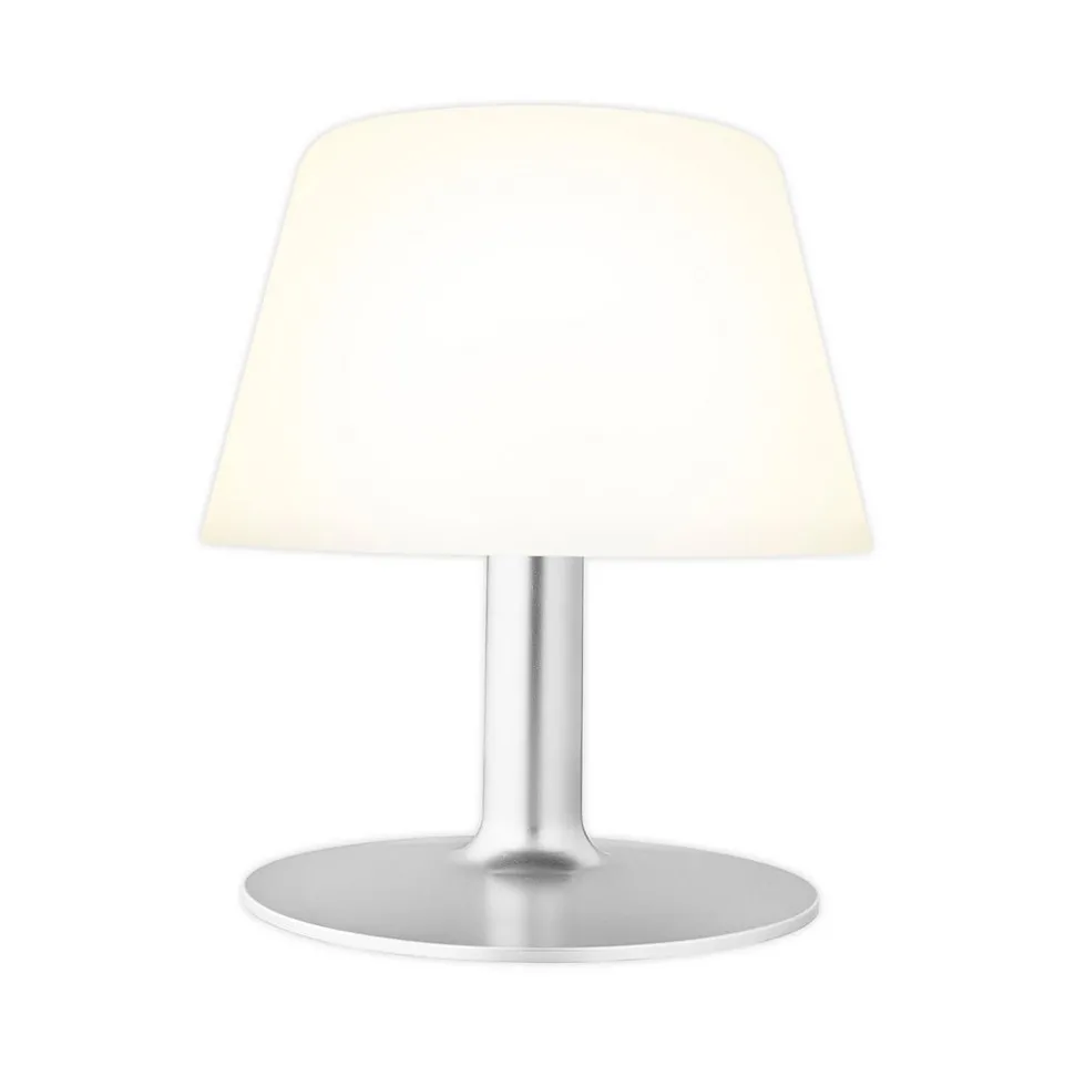 Met oplaadbare batterij en zonnepaneel: drietraps dimbare SunLight LED tafellamp op zonne-energie, USB, IP65 De SunLight LED tafellamp op zonne-energie bestaat uit een voet van zilverkleurig gelakt staal en een kap van opaalwit plastic. De lamp is stofdicht en beschermd tegen waterstralen, waardoor het een decoratieve lichtbron is op het terras of balkon. Omdat er een zonnepaneel en oplaadbare batterijen geïntegreerd zijn, kan hij zonder extra stroombron worden gebruikt. Als alternatief is opladen ook mogelijk via USB en wordt er een geschikte USB-kabel meegeleverd (zonder netadapter). SunLight heeft ook een schemersensor zodat hij automatisch wordt ingeschakeld als de zon ondergaat. Dankzij de energiebesparingsfunctie schakelt hij na 6 uur automatisch uit. LED’s zijn al geïntegreerd en de intensiteit van het licht kan in drie stappen worden gedimd (100 % / 70 % / 25 %). Technische kenmerken – Kan onafhankelijk van het lichtnet worden gebruikt dankzij het zonnepaneel en de oplaadbare batterij – Alternatief oplaadbaar via USB (USB-kabel meegeleverd, zonder netadapter) – Dimbaar in drie stappen (100 % / 70 % / 25 %) – Incl. Schemersensor – Energiebesparingsfunctie: schakelt automatisch uit na 6 uur – Lichtduur: tot 20 uur (bij 25% vermogen) – Oplaadtijd: ongeveer 8 uur (op zonne-energie) – Stofdicht en beschermd tegen waterstralen (IP65)