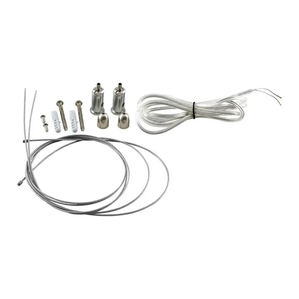 Touwophangset voor armaturen uit de Munus-serieDe set bestaat uit twee roestvrijstalen touwen van elk 2 m lang en een transparante verbindingskabel van 2,25 m lang.Per armatuur is één set nodig.