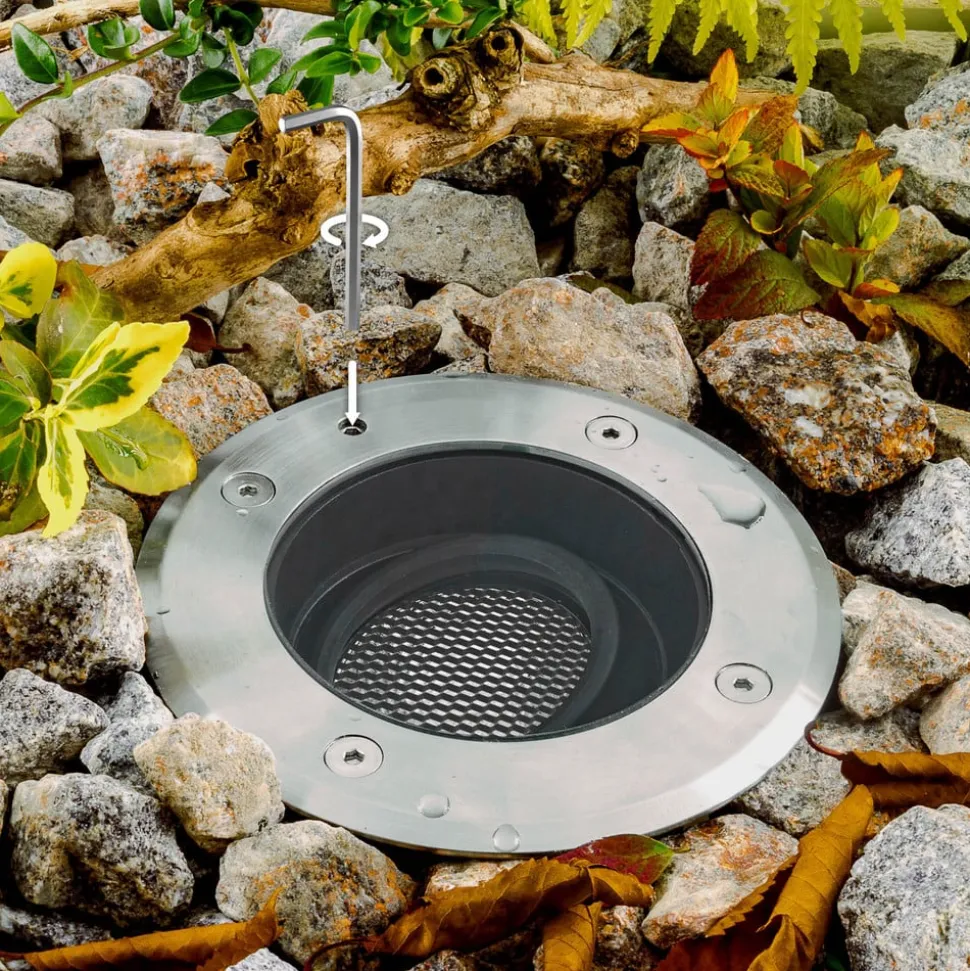 Pentola ronde LED inbouwlamp met voor paden en opritten De Pentola LED inbouwlamp is ideaal als aanvulling op een modern verlichtingsconcept in uitdagende buitenlocaties. Ze is gemaakt van een massieve aluminium behuizing met een deksel van EDELSTAHL en helder veiligheidsglas. Met een beschermingsgraad van IP65 trotseert ze de weersinvloeden. Pentola is ook bestand tegen een maximale belasting van 1.500 kg en kan worden overreden met een maximumsnelheid van 20 km/u. Daarmee is de grondspot inbouwlamp Pentola ideaal voor het verlichten van opritten. Bij de levering is een kunststof installatiehuls inbegrepen. Aan de onderkant van de armatuur is een zelfontluchtende klep geïnstalleerd om condensatie te voorkomen. – Directe aansluiting op 230 Jannes – Lichtverdeling: symmetrisch – Stralingshoek: 38° – Ook na installatie zwenkbaar (MAX 20°) dankzij geïntegreerde stelschroef – Slagvastheid: IK08