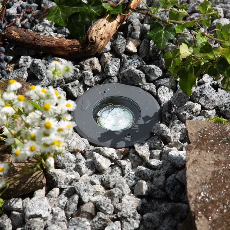 Inbouw vloerlamp Talpa in ronde vorm voor GU10 lamp, zwenkbaar