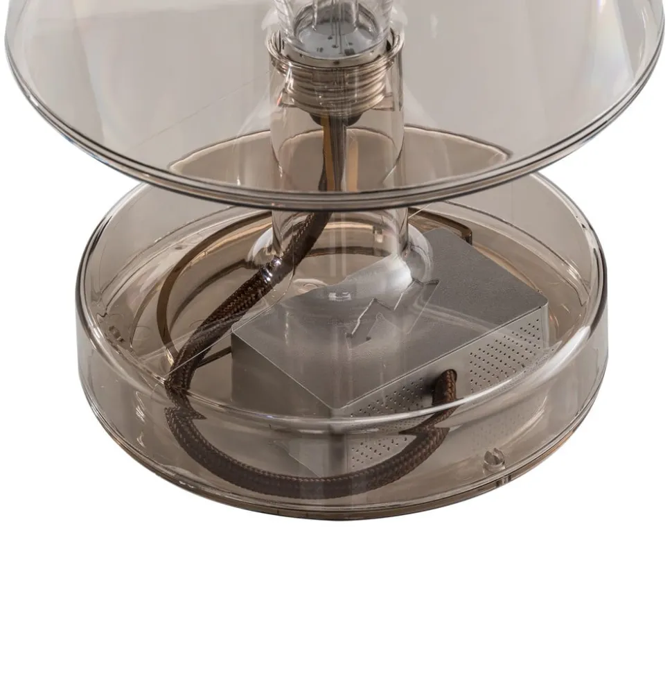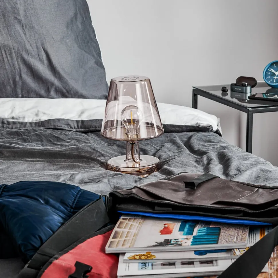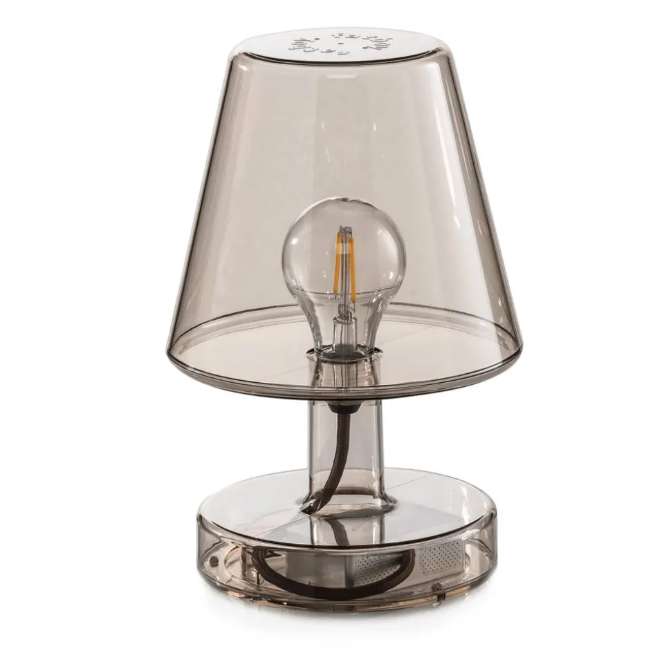 De LED-tafellamp Transloetje is een echte blikvanger en ziet er gewoon cool uit – of hij nu aanstaat of niet. Dankzij de transparante optiek is alle technologie zichtbaar. De LED-lichtbron is ontworpen in de stijl van een gloeilamp en kan de omgeving rondom verlichten dankzij het kristalheldere zicht. Een kleurrijk snoer slingert zich naar de ingebouwde oplaadbare batterij, die tot 20 uur meegaat, afhankelijk van het helderheidsniveau. Hij wordt dan gemakkelijk opgeladen via een USB-kabel. De tafellamp is draadloos en kan dus flexibel worden geplaatst.