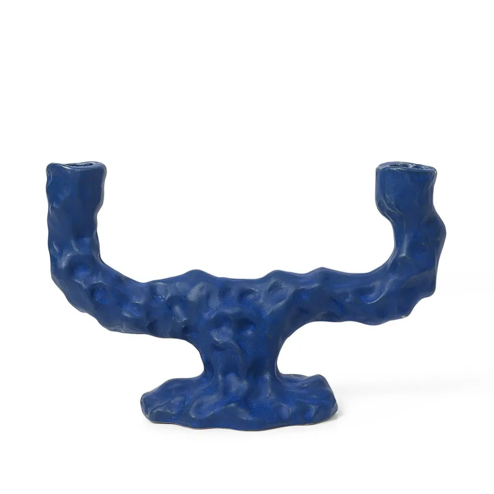 ferm LIVING Kandelaar Ditto Double, blauw, keramiek