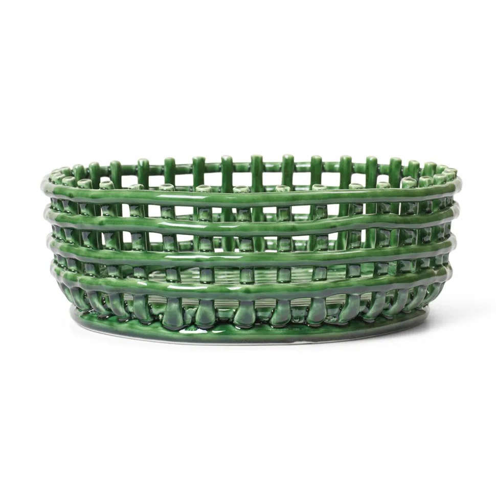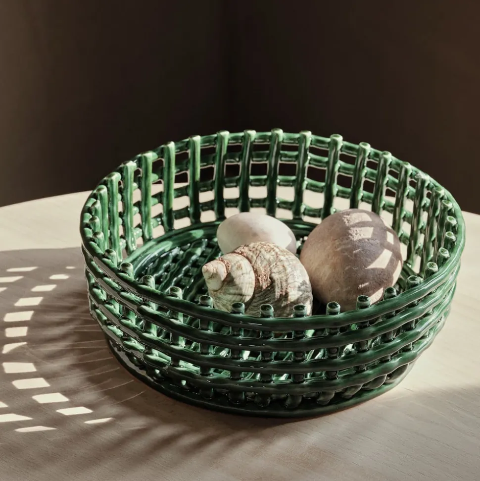 ferm LIVING Keramisch middenstuk mand, groen, Ø 29 cm, keramiek