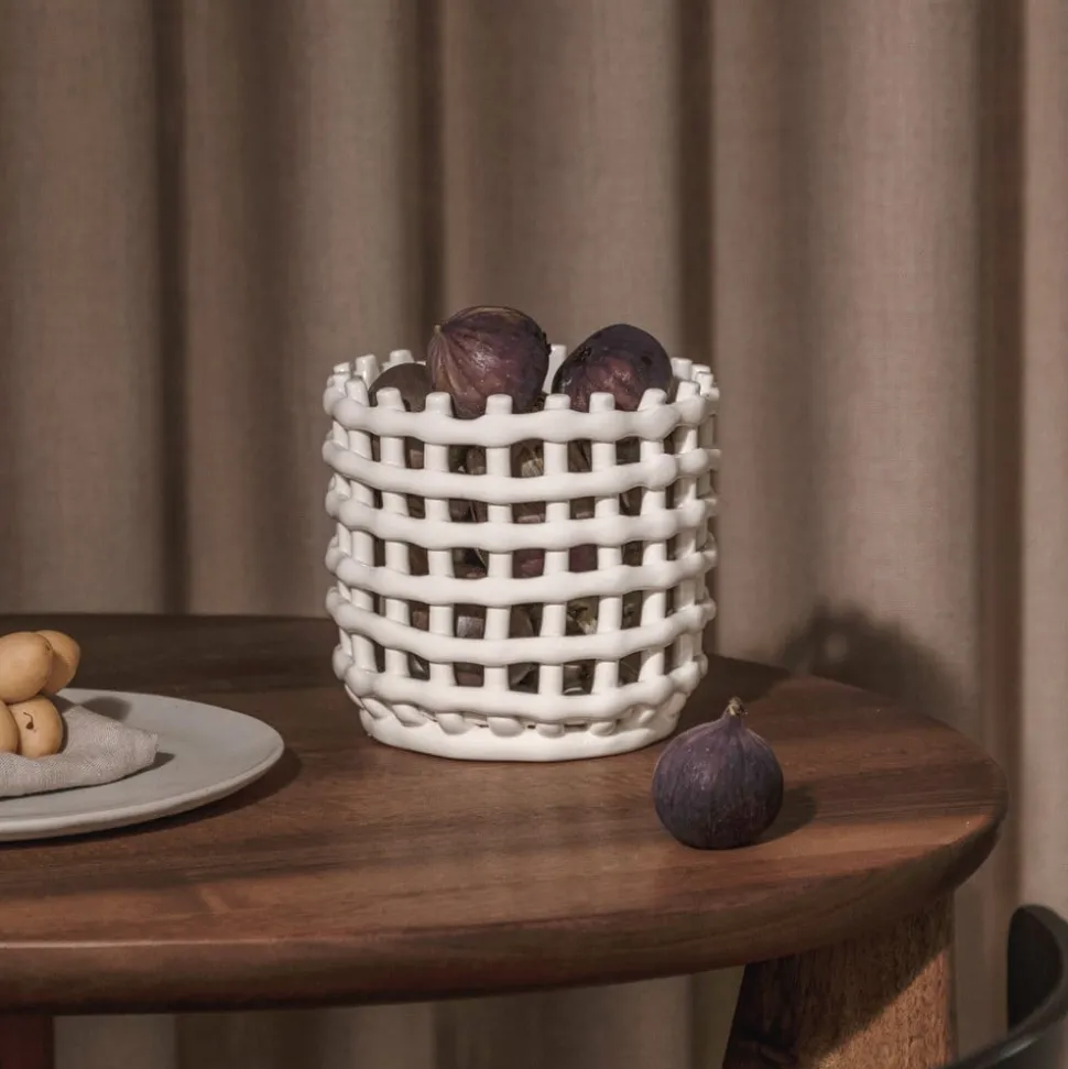 ferm LIVING Keramische mand, rond, Ø 16 cm, wit, keramiek