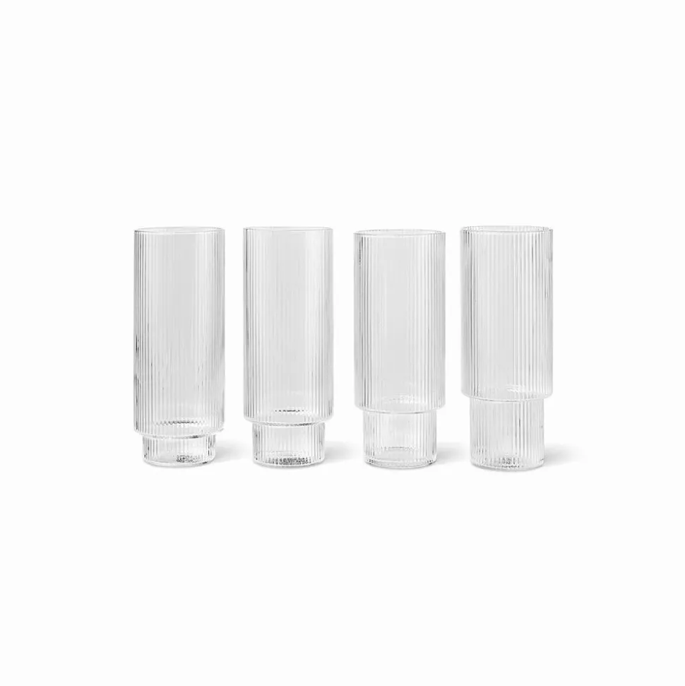 ferm LIVING longdrinkglas Ripple, helder, 300 ml, glas, set van 4