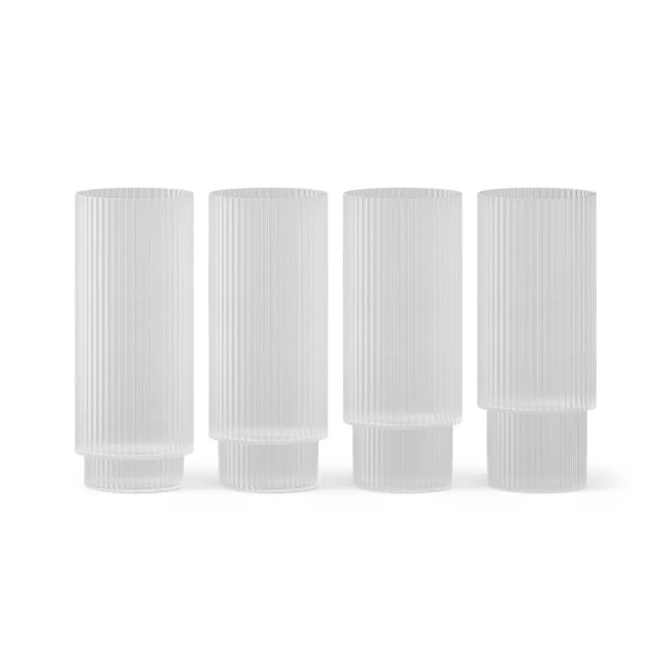 ferm LIVING longdrinkglas Ripple, wit, 300 ml, glas, set van 4