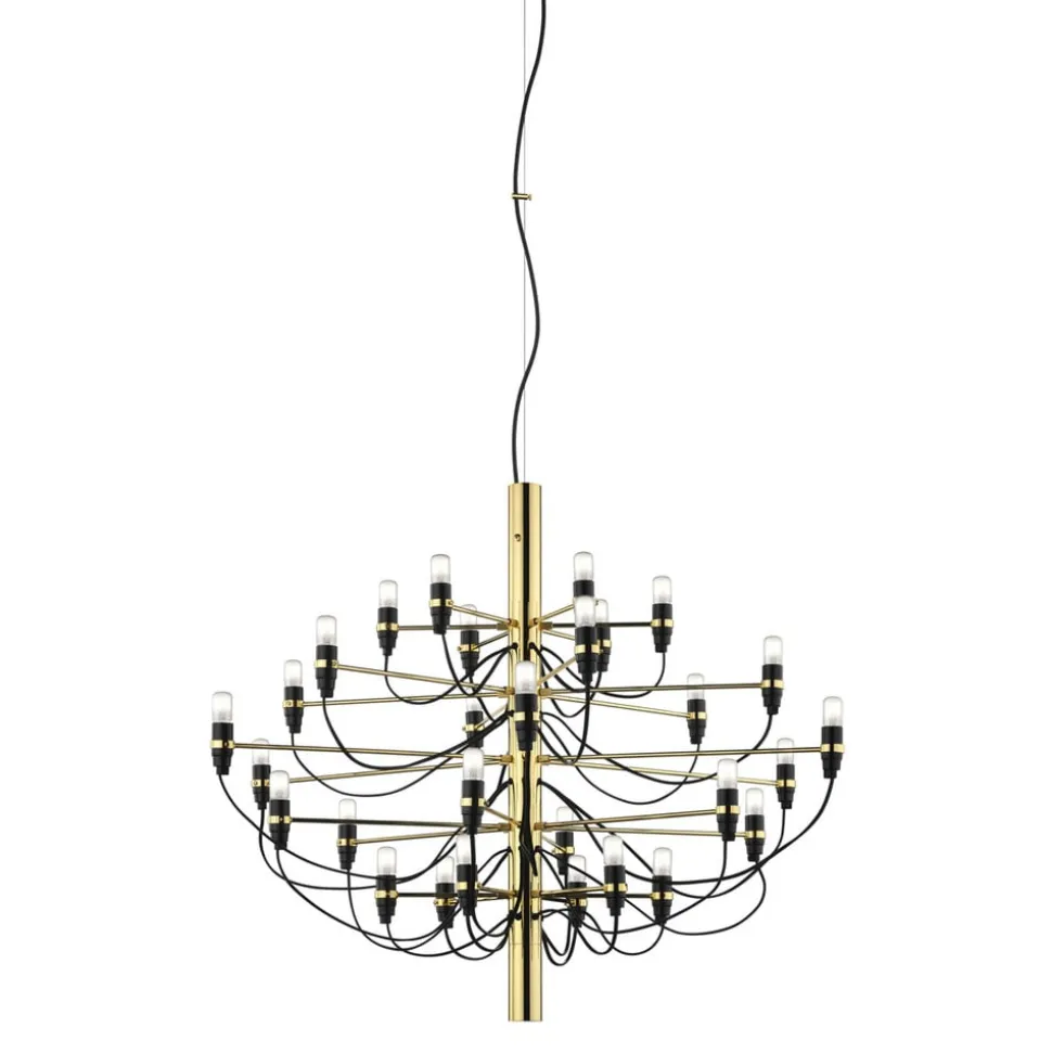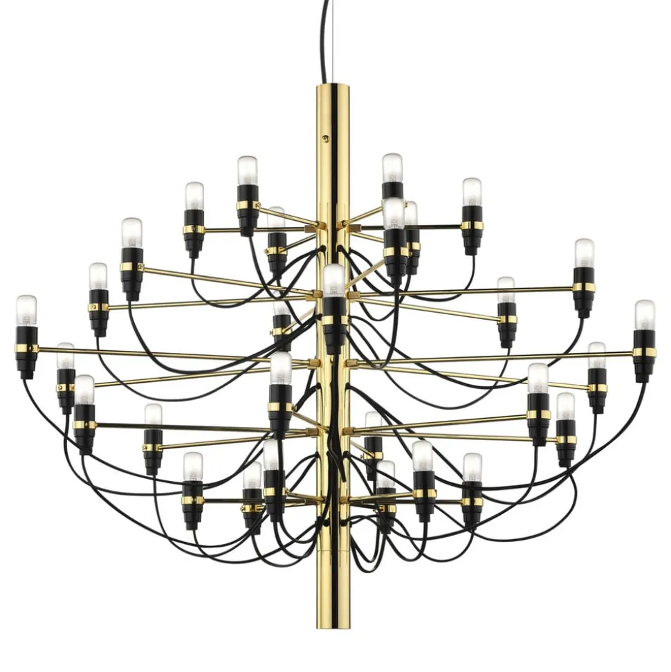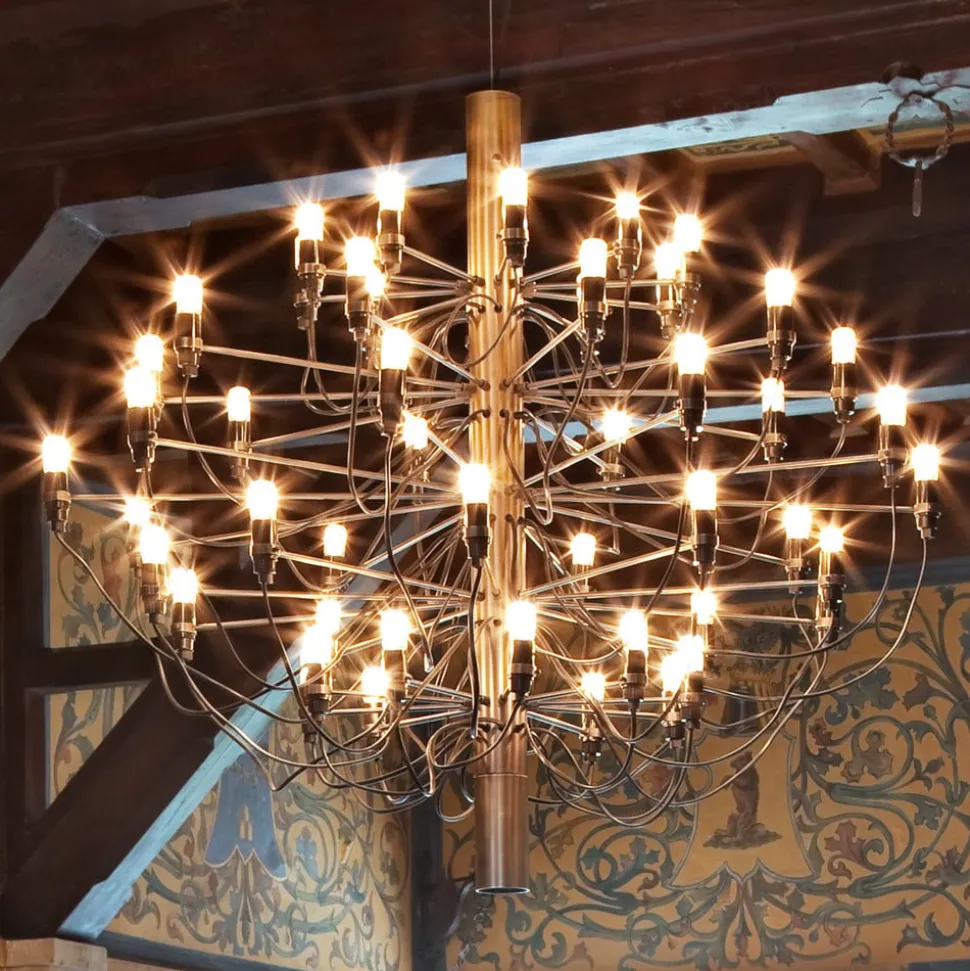 2097 – een kroonluchter voor de toekomst?Wie de kroonluchter 2097 bekijkt, zou op het eerste gezicht waarschijnlijk niet denken dat het ontwerp voor dit licht futuristische verlichtingsobject uit 1958 stamt. Het zou veel waarschijnlijker zijn om het te dateren in het jaar 2097 – volgens zijn naam. Maar de Italiaanse ingenieur en ontwerper Gino Sarfatti (1912 – 1984) had met deze reductie van de prachtige, klassieke kroonluchter zeker al de toekomst voor ogen. De rudimentaire kenmerken van een kroonluchter – zoals kroonluchters ook vaak worden genoemd – zijn nog steeds aanwezig, maar in een zeer puristische vorm. 50 gebogen armen zijn met dwarsbalken aan de kern van de kroonluchter bevestigd. Aan het einde van elke arm zit een kleine lichtbron in de vorm van E14-lampen. Gino Sarfatti is een van de veteranen van het ontwerpteam van de Italiaanse fabrikant FLOS. In zijn dertigjarige carrière als ontwerper heeft Sarfatti meer dan 400 lampen ontworpen.
