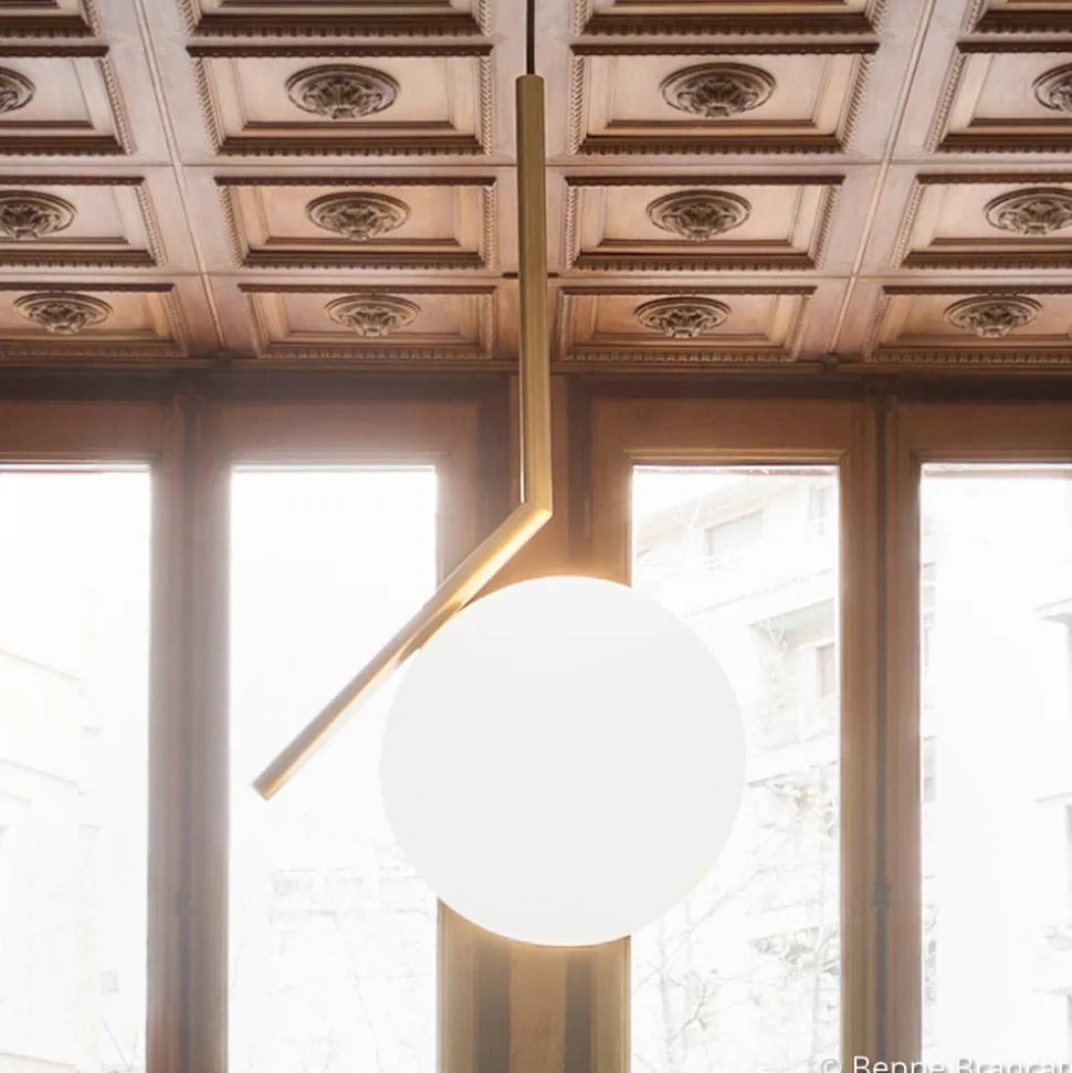 Een glazen bol in het centrum van de symmetrie – de IC hanglamp De ontwerper van de IC lampenserie werd geïnspireerd door een jongleur die verschillende ballen over zijn armen liet lopen – tot aan zijn vingertoppen en terug. Het beeld dat zich aan hem voordeed, vormde de sjabloon voor het ontwerp van IC: een perfect gevormde symmetrie met een glazen bal die in volledige balans aan een stang lijkt te hangen. Het bedrijf FLOS bestaat nu al meer dan 50 jaar en creëert met een team van gerenommeerde ontwerpers bijzondere armaturen van hoge kwaliteit die internationaal veel erkenning en talrijke prijzen hebben gekregen.