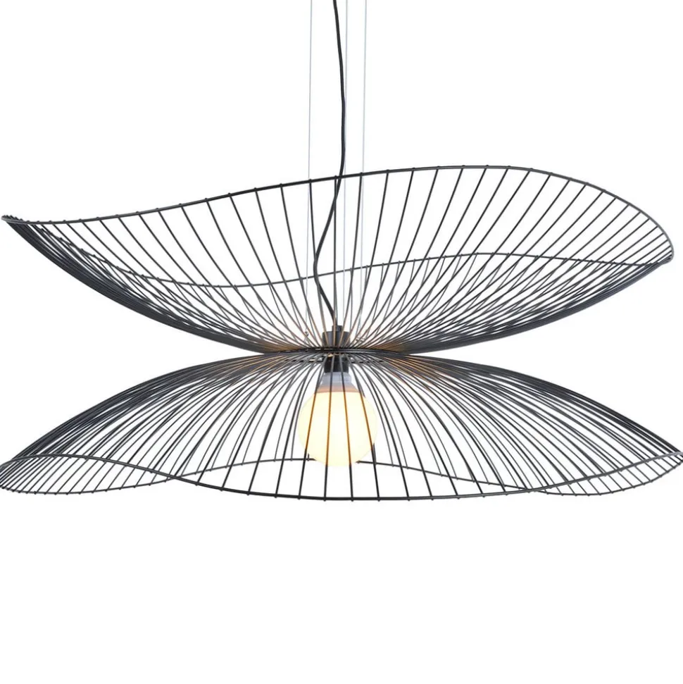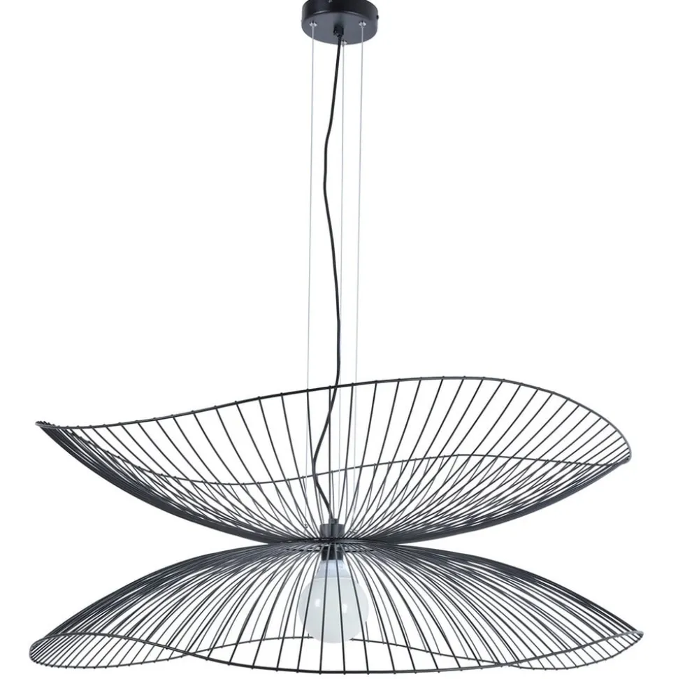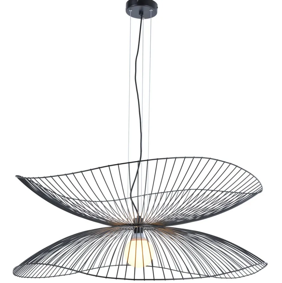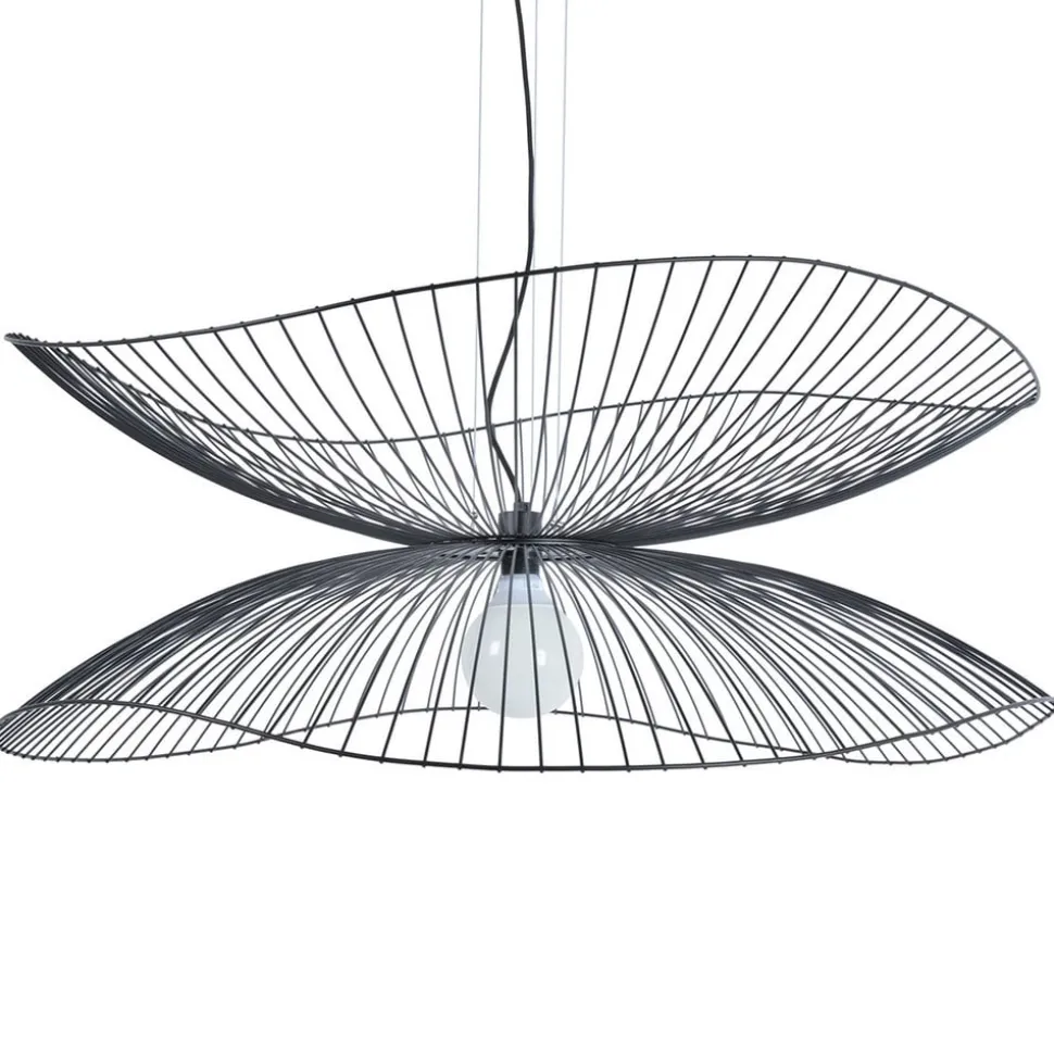 Libellule is een filigraan hanglamp met een kap van twee metalen ribben die rond de E27-fitting zijn bevestigd. De gebogen vorm van deze kap doet denken aan de vleugels van een libel en geeft de armatuur een zekere lichtheid. De metalen stangen zorgen voor een duidelijk zicht op de lichtbron en laten magische lichtmomenten toe uit het samenspel van licht en schaduw.