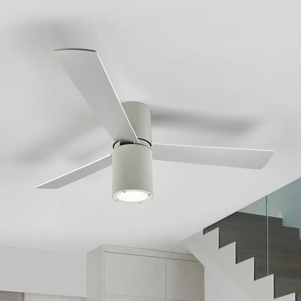 De plafondventilator Formentera met zijn tijdloze en vooruitstrevende design is een allround talent op zijn gebied. De aangebrachte rotorbladen kunnen naar keuze op de witte of grijze zijde worden geplaatst.