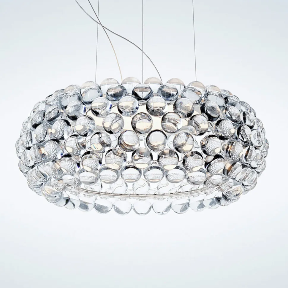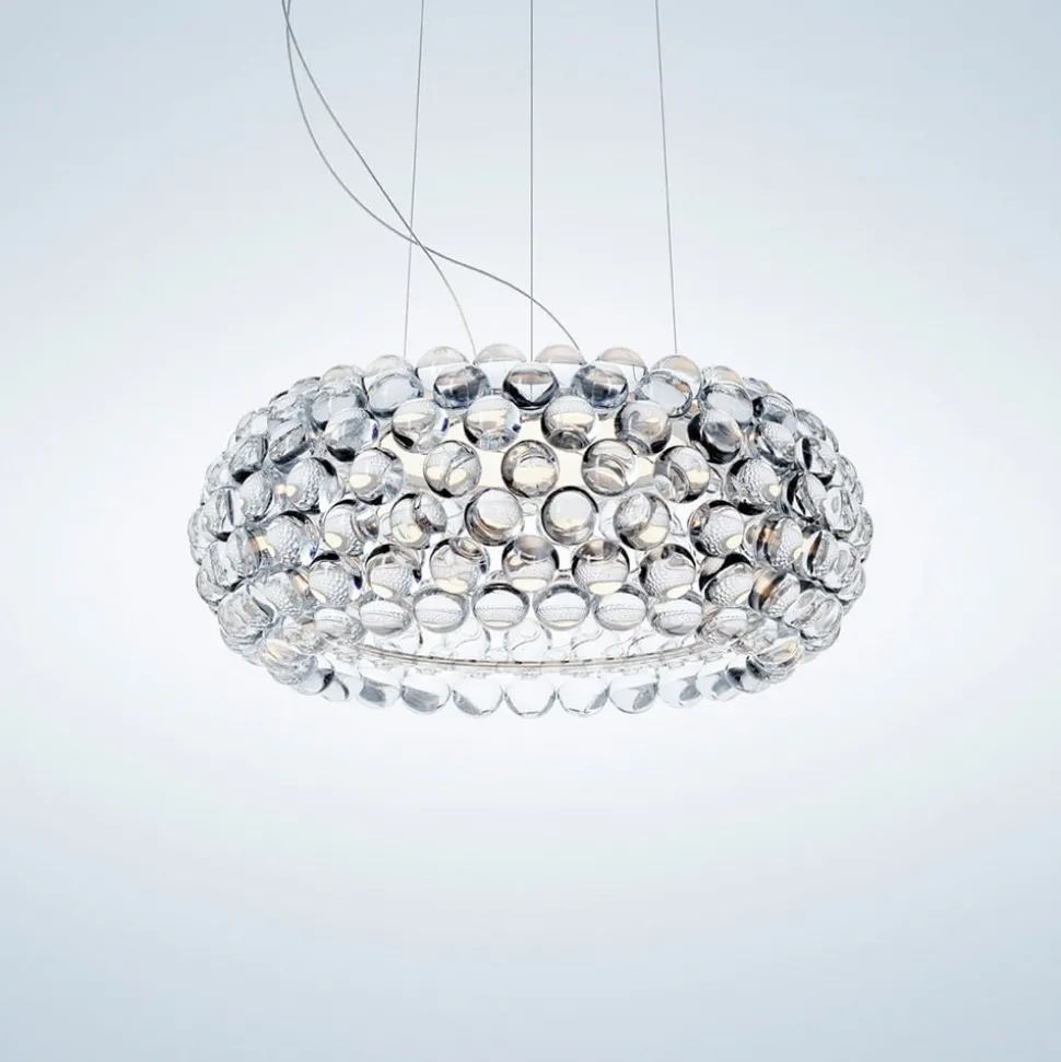 Moderne technologie en indrukwekkend design komen samen in deze lichtdispenser. De LED pendelarmatuur Caboche Plus media van Foscarini is een echte designklassieker, ook al werd de serie pas in 2005 ontwikkeld door Patricia Urquiola en Eliana Gerotto. De twee werden gedreven door de wens om een lamp te creëren met de sprankelende fascinatie van een parelarmband. Dit wordt in de Caboche serie gerealiseerd door middel van PMMA bollen, die de gehele buitenkant omgeven, het licht breken en de ruimte betoveren met indrukwekkende lichteffecten.