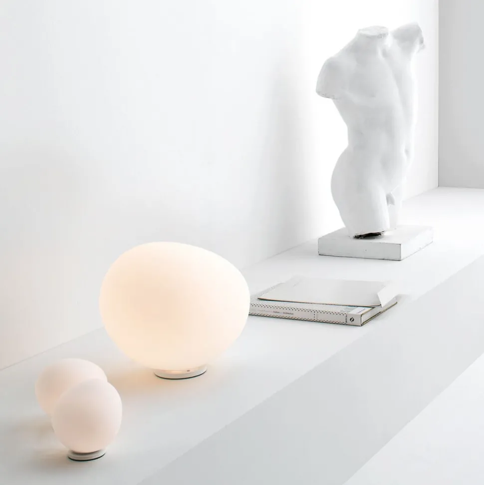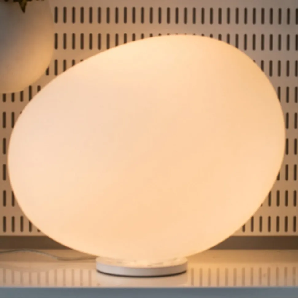 Zijn zachte, organische vorm maakt de Gregg tafellamp van Foscarini, gemaakt van handgeblazen, met de hand gezuurd glas, een lamp die rust en harmonie uitstraalt. Minder als een precies gevormde bol, maar eerder als een kiezelsteen die gedurende een lange tijd geleidelijk aan door het water in de rivier is gewassen, heeft het effect op de toeschouwer. Afhankelijk van de zichthoek verandert de asymmetrische vorm van Greggs voortdurend – nog een voordeel ten opzichte van de klassieke perfecte bolvorm.