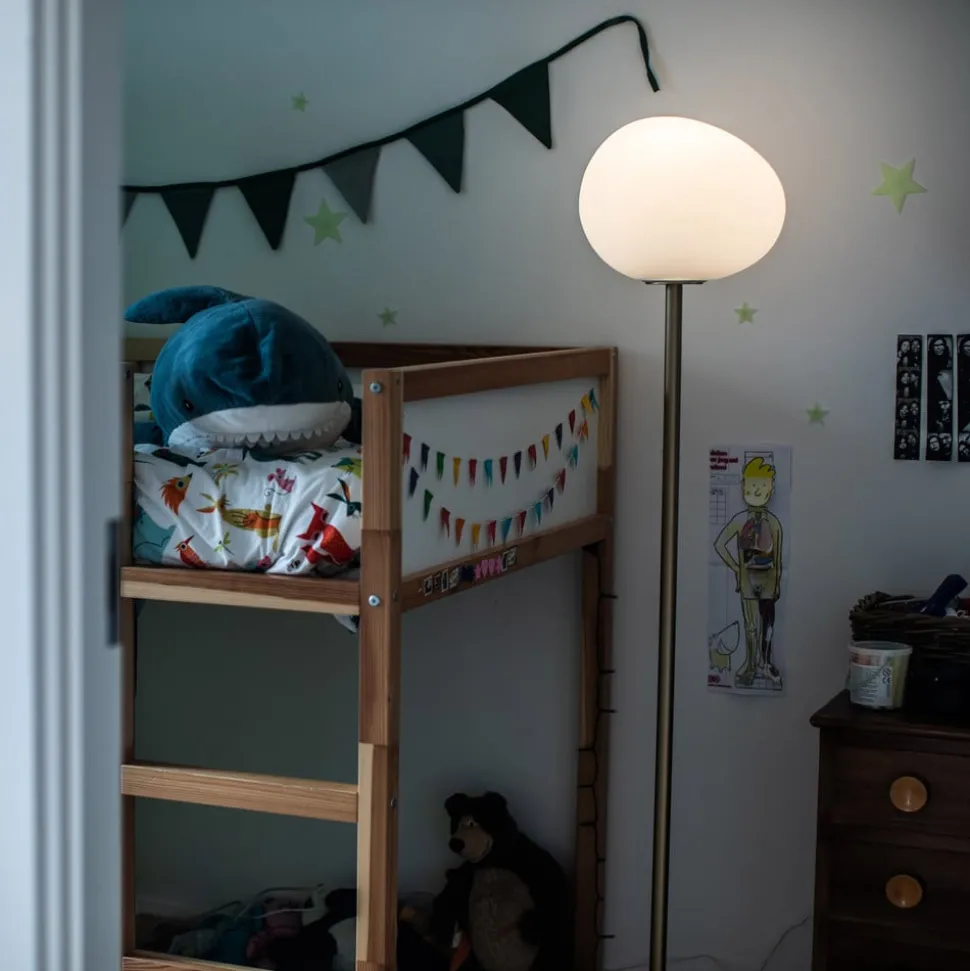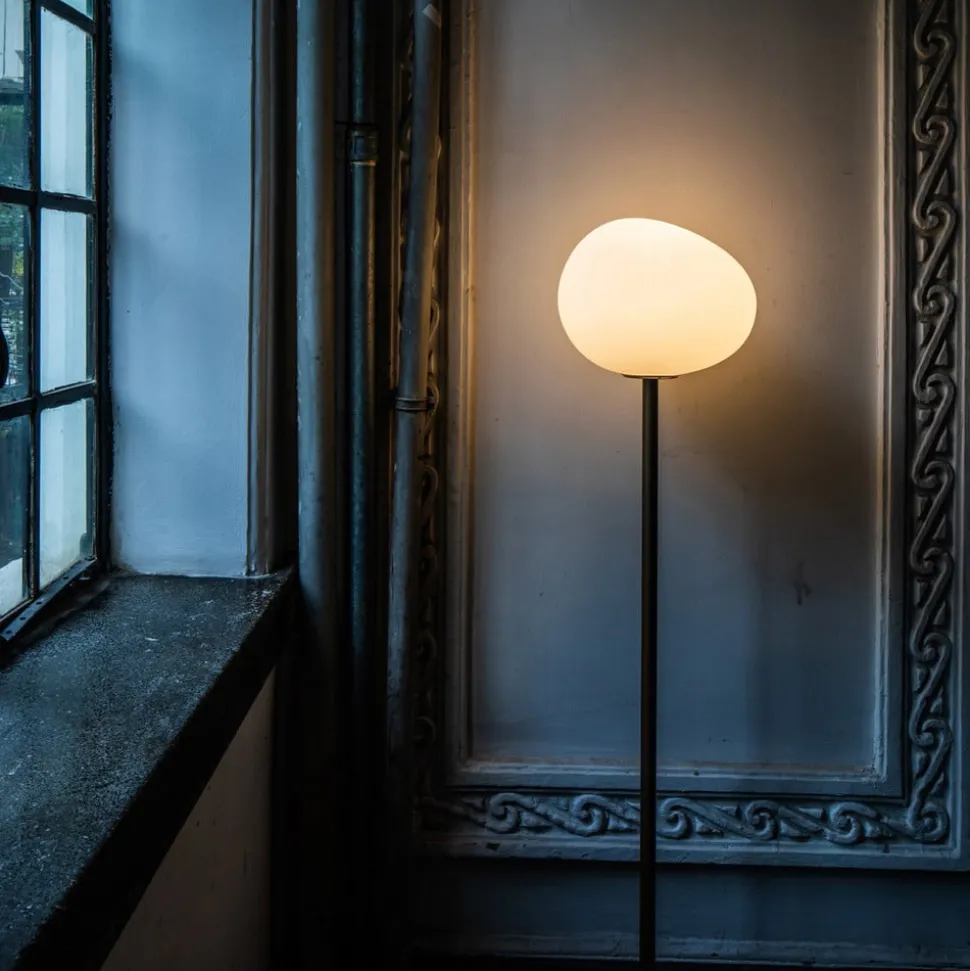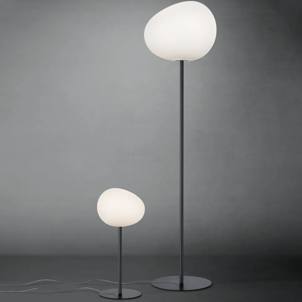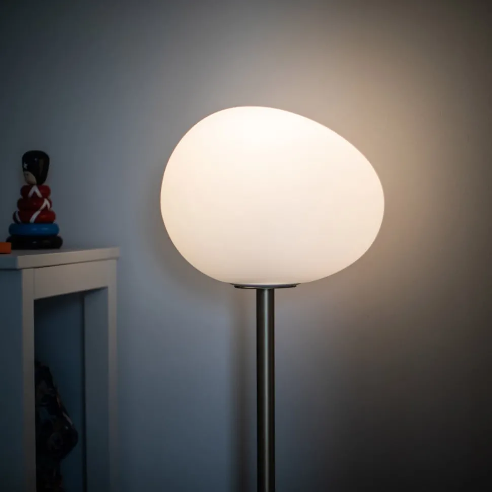De Gregg-vloerlamp past discreet in zijn omgeving en zorgt voor een aantrekkelijk lichtaccent, zowel bij het in- als bij het uitschakelen. De vorm van de lampenkap doet denken aan een kiezelsteen die in de loop der eeuwen door het water van een rivier is afgesneden, waardoor deze zijn typische gebogen contouren heeft gekregen. Door deze organische vorm presenteert Gregg zich in een andere verschijningsvorm, afhankelijk van de invalshoek van de toeschouwer.