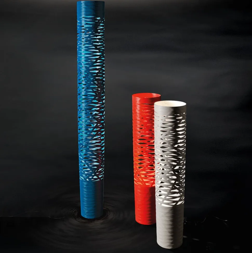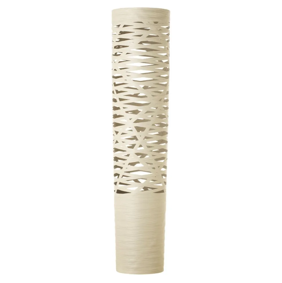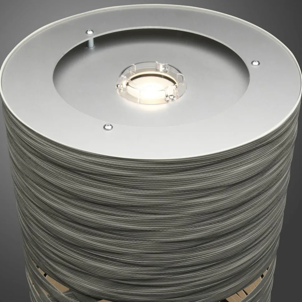 Een cilindrische lichtsculptuur gemaakt van glasvezelband gecoat met epoxyhars – dat is de vloerlamp Tress media van Foscarini. Geïnspireerd door de verleidelijke vorm van een gevlochten vlecht, ontwierp industrieel ontwerper Marc Sadler in 2008 de armatuurserie Tress.