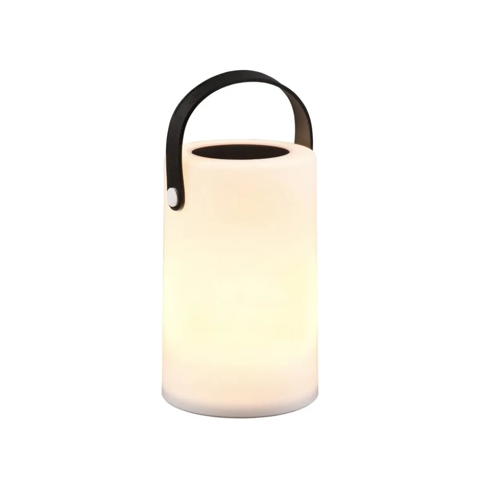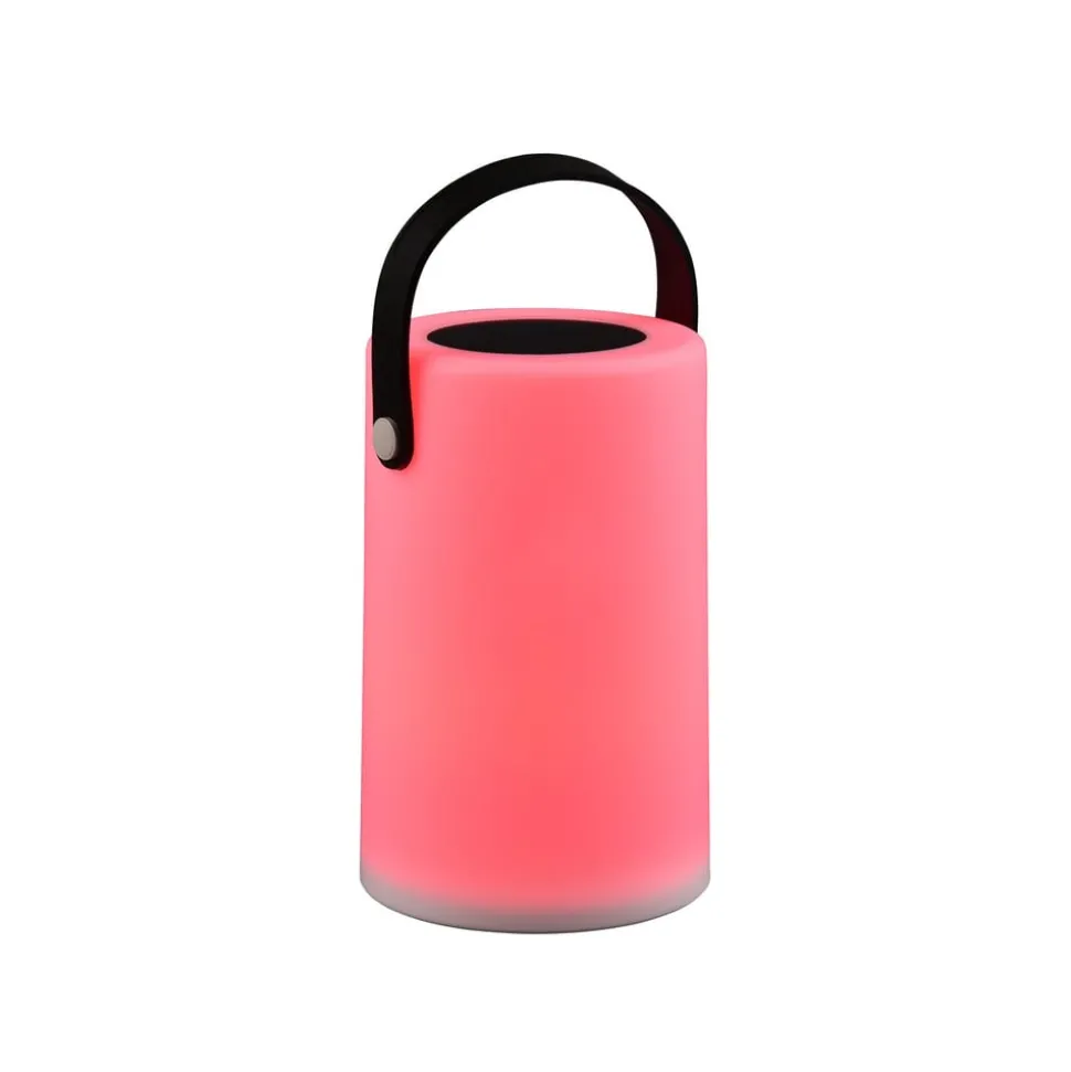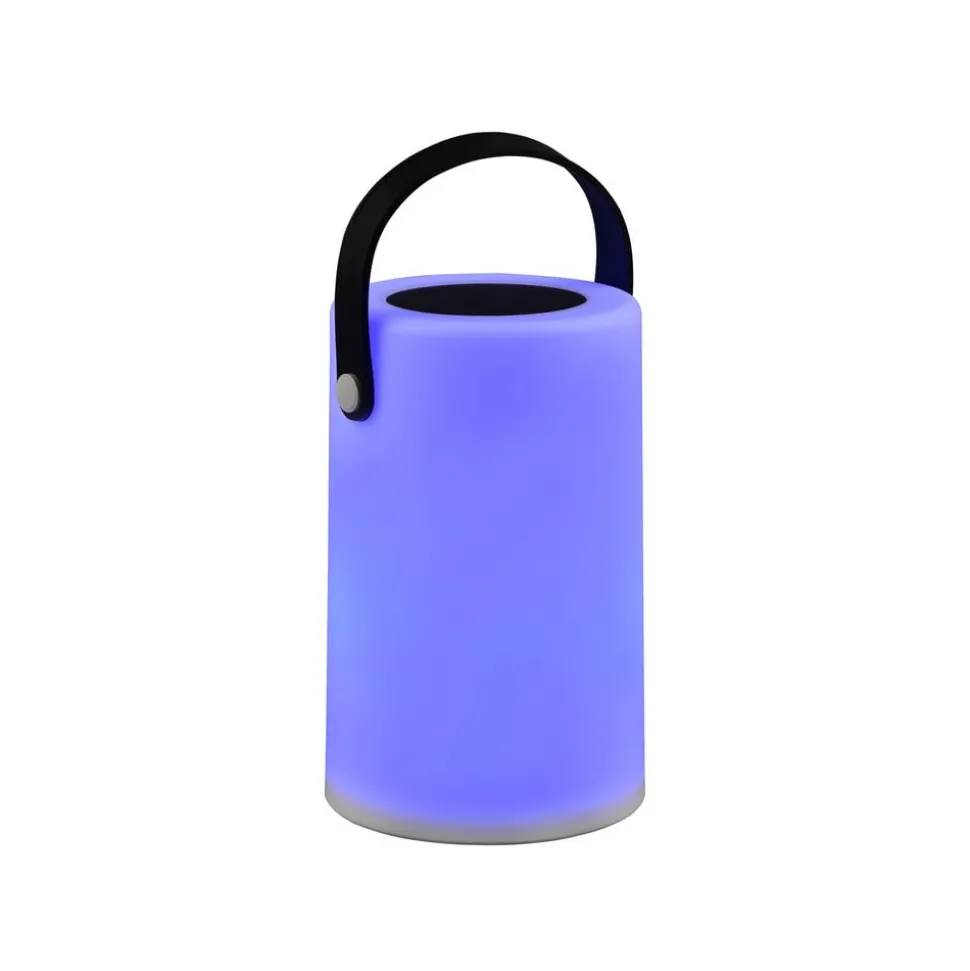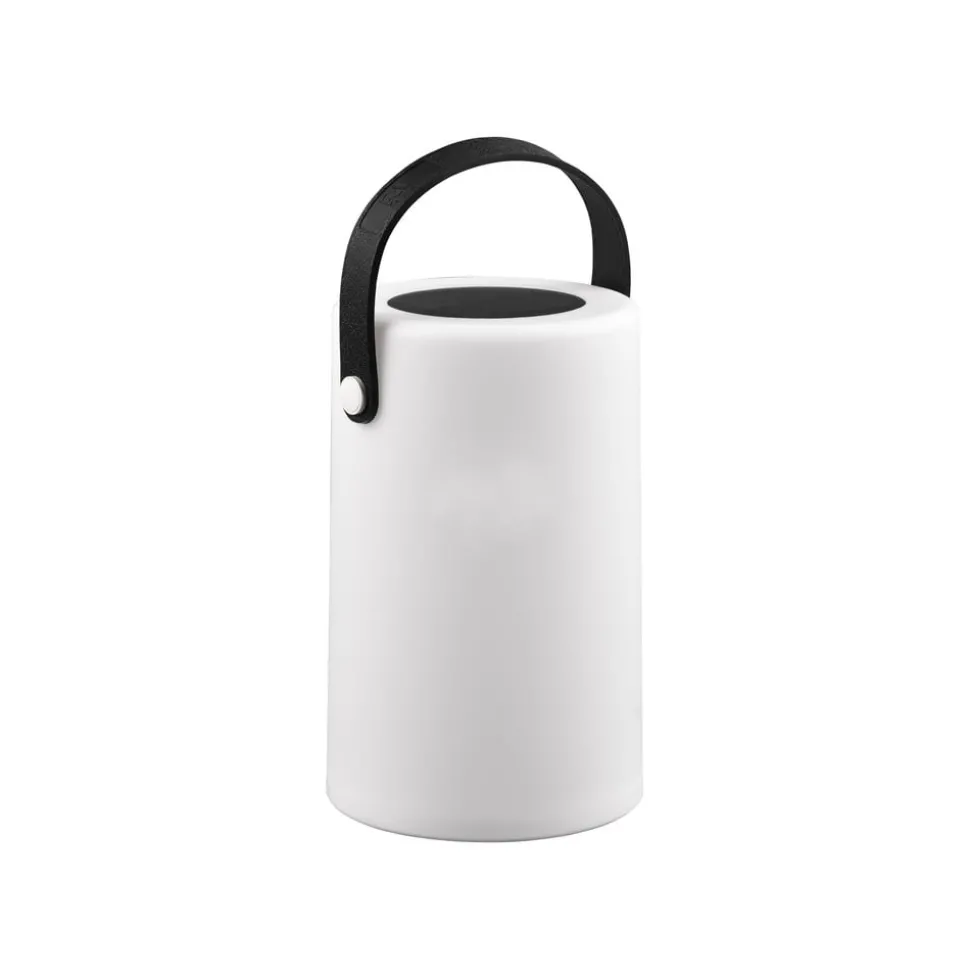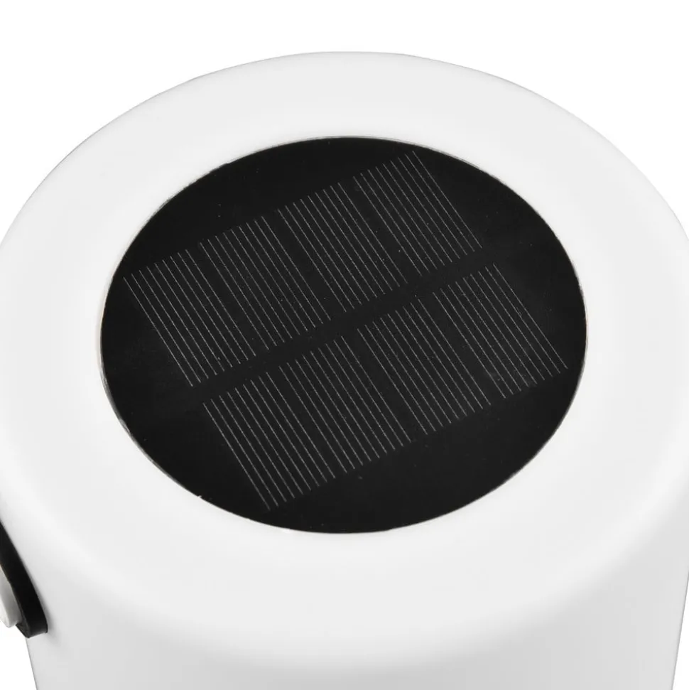 Garcia LED lamp op zonne-energie met RGBW-kleurwisselfunctie en USB-aansluiting Dankzij het eenvoudige ontwerp past de Portable Garcia lamp moeiteloos in verschillende omgevingen en kan ze worden gebruikt op het balkon, terras of in de tuin. Dankzij de draaggreep is de lamp gemakkelijk te vervoeren. Garcia heeft een zonnepaneel op de bovenkant van de lamp, maar kan ook worden opgeladen via een USB-kabel. Er zit een kleine schakelaar aan de onderkant van de lamp om de kleurverandering te regelen. Je kunt kiezen uit 9 verschillende instellingen – Volledige oplaadtijd ongeveer 6 uur (Solar en USB)