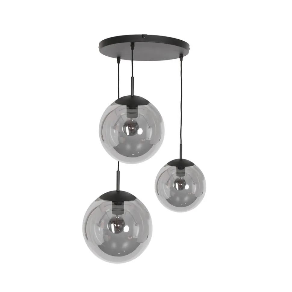 Glazen hanglamp Bollique, zwart, 3-lamps