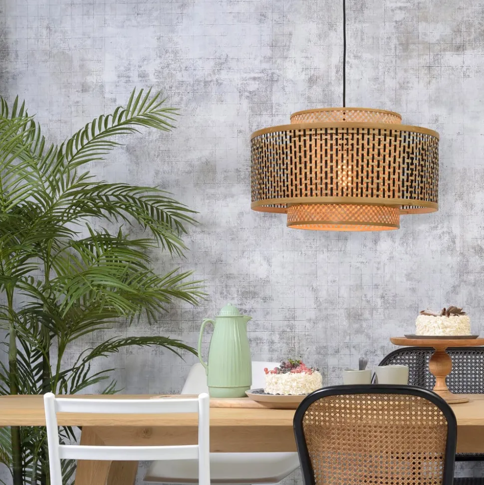 Gemaakt van duurzaam bamboe – hanglamp Bhutan met dubbele kap