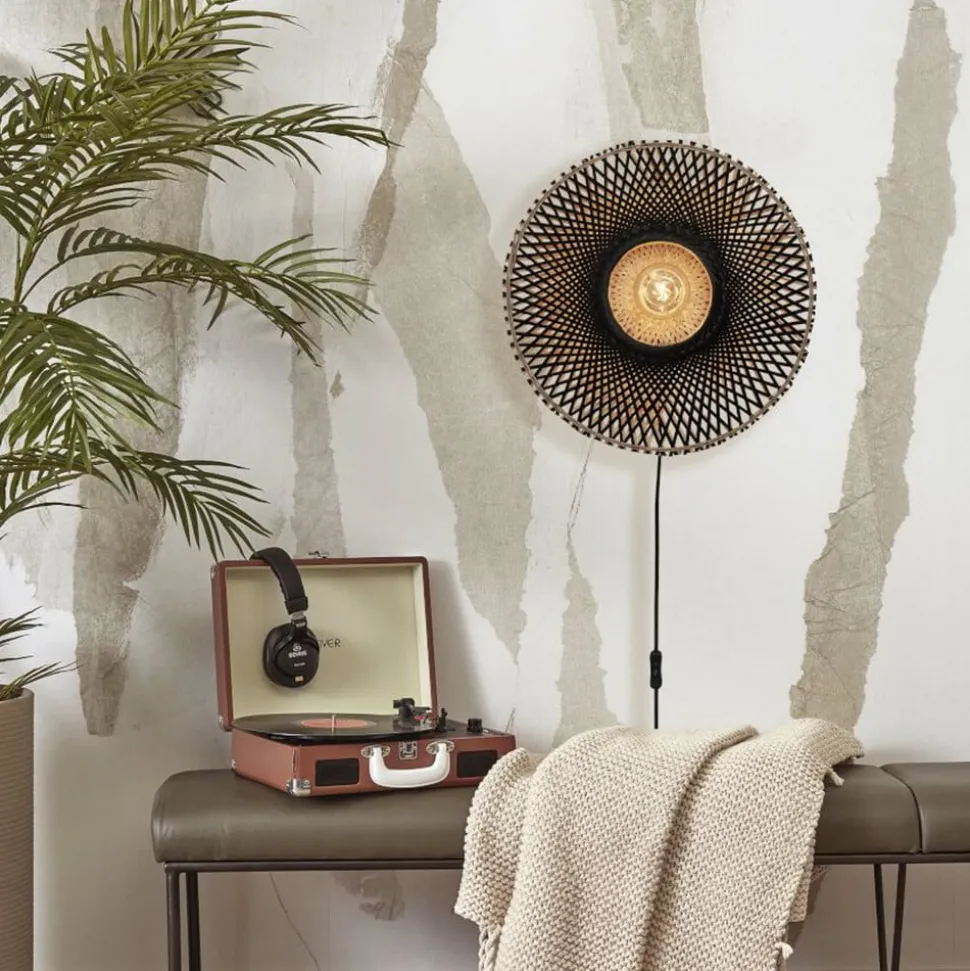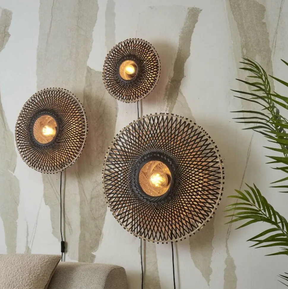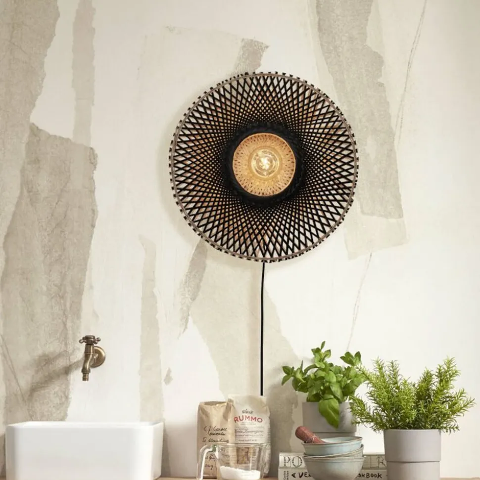 Ronde wandlamp Kalimantan met kabel en schakelaar Deze ronde wandlamp is een uniek verlichtingselement dat gemaakt is van natuurlijke materialen en dezelfde natuurlijke kleur behoudt. Kalimantan maakt indruk met zijn geweven kap van soepel, stevig bamboe, dat als duurzaam materiaal wordt beschouwd. De plant kan steeds opnieuw worden afgeknipt en groeit zeer snel terug, produceert ook veel zuurstof en heeft een indrukwekkende textuur. Allen van de Must lopen door tot in het midden van het ronde armatuur, waar een ronde uitsparing is verwerkt. De te gebruiken lamp zit in deze uitsparing, is volledig zichtbaar en spot het licht direct. Het ontsnapt ook in het armatuur, waar het door de spleten schijnt en een uniek lichtpatroon in de ruimte creëert. Kalimantan wordt aangesloten via een plug-in kabel met een geïntegreerde schakelaar voor moeiteloze bediening. Good & Mojo is een merk van het Nederlandse bedrijf It’s about Romi, dat in 2010 begon te werken met duurzame materialen. Uit dit project ontstond het eigen duurzame merk Good & Mojo, dat in 2016 op de markt werd gebracht. Das is ook betrokken bij sociale projecten en adverteert met het feit dat voor elk verkocht product een boom wordt geplant.