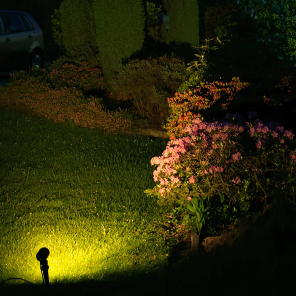 Met de grondspies kan de grondspot accenten in de tuin zetten – vooral in gazons of op onverharde terreinen. Met weinig moeite kan buiten een geweldig effect worden bereikt. De schijnwerper wordt van stroom voorzien door middel van een kabel.